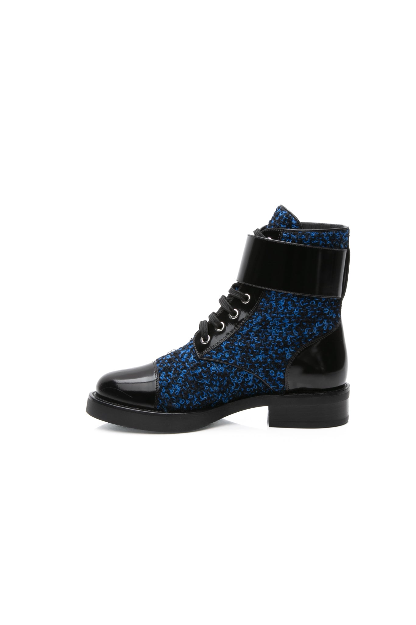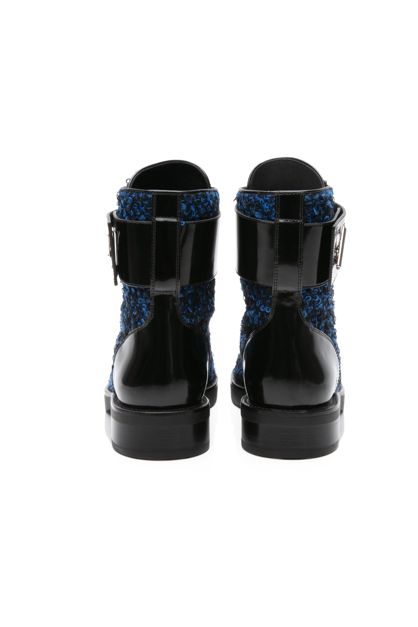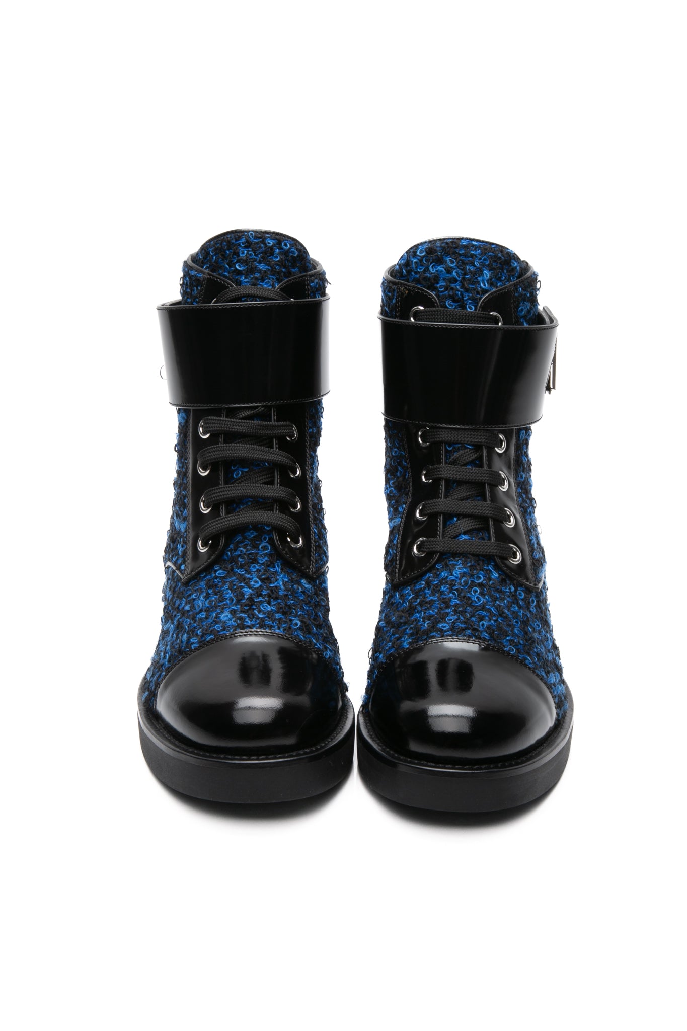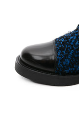 LOUIS VUITTON Black and Blue Tweed Signature LV Twist Clasp Wonderland Flat Ranger Combat Boots 37