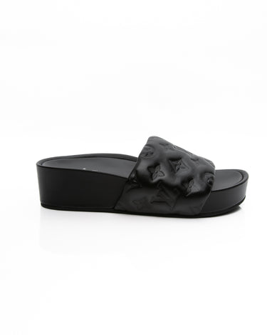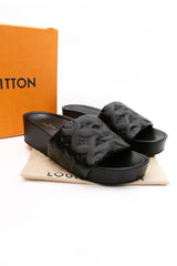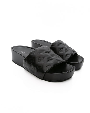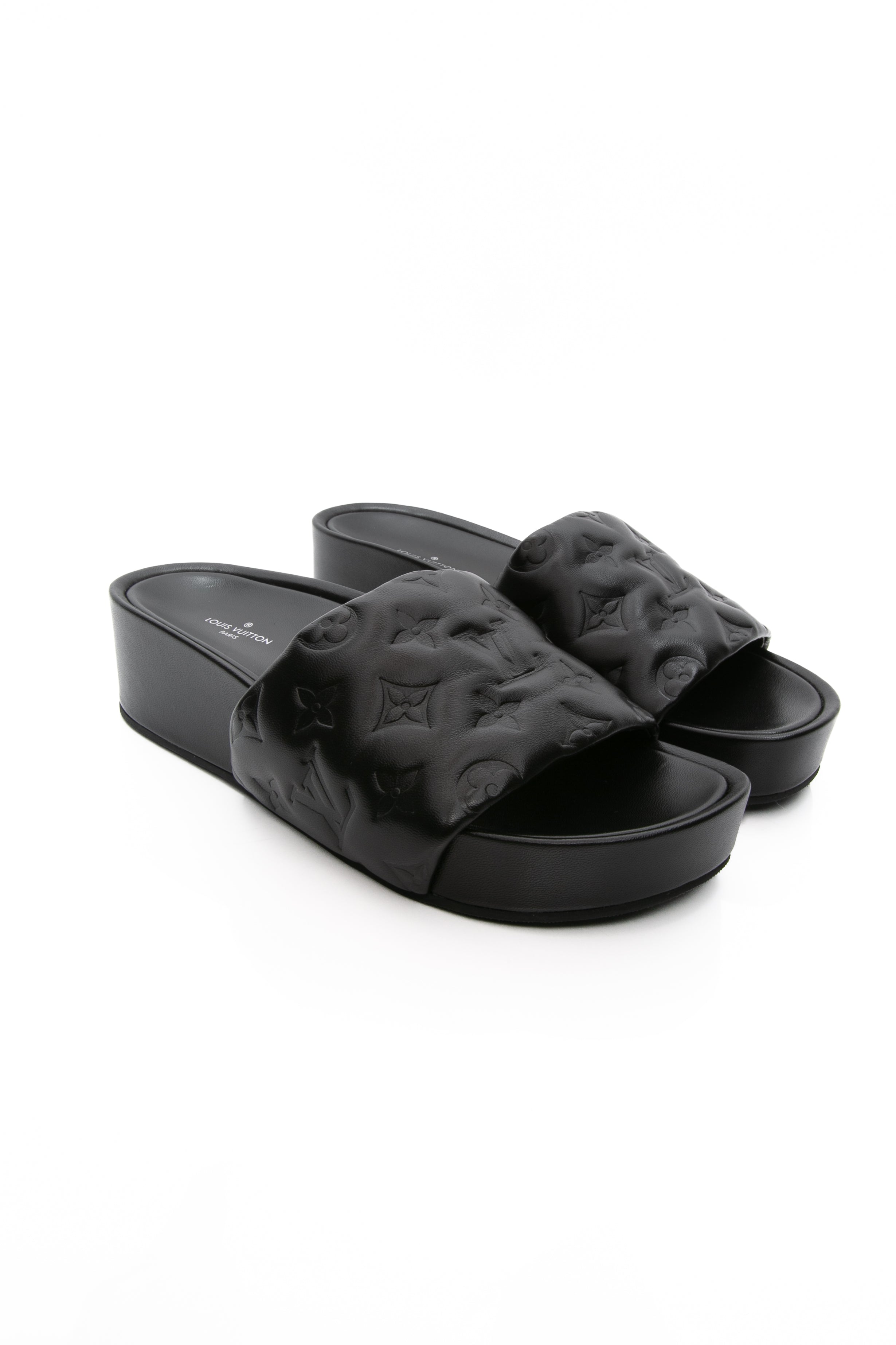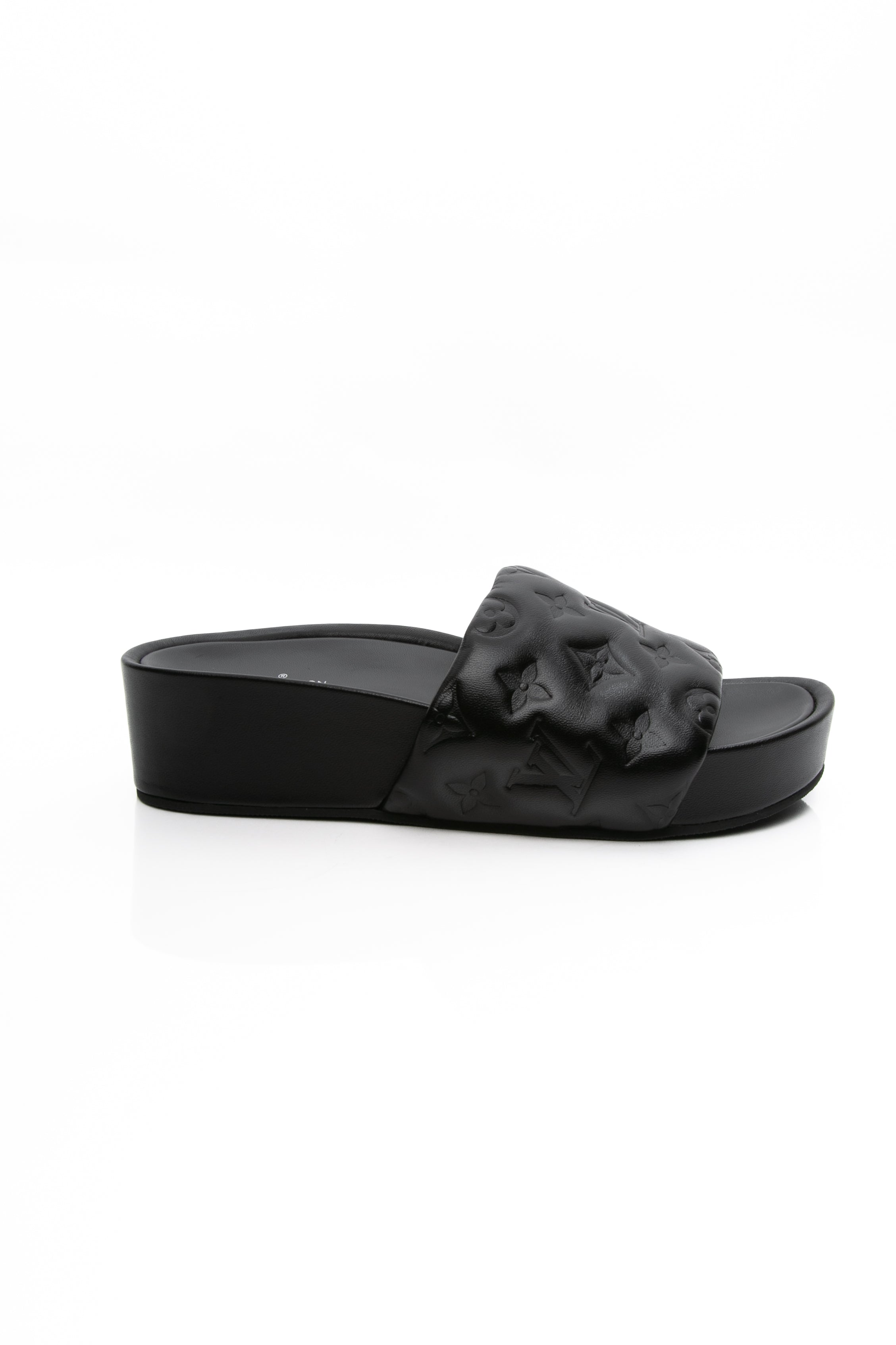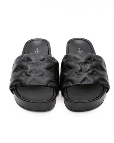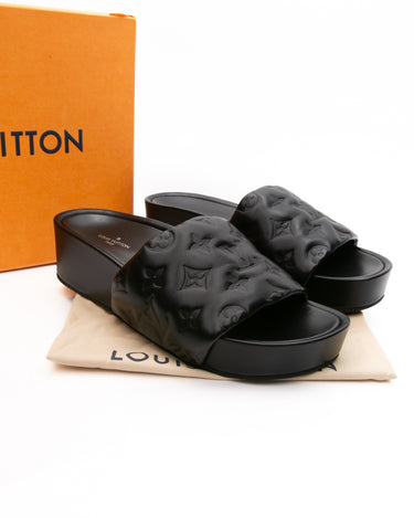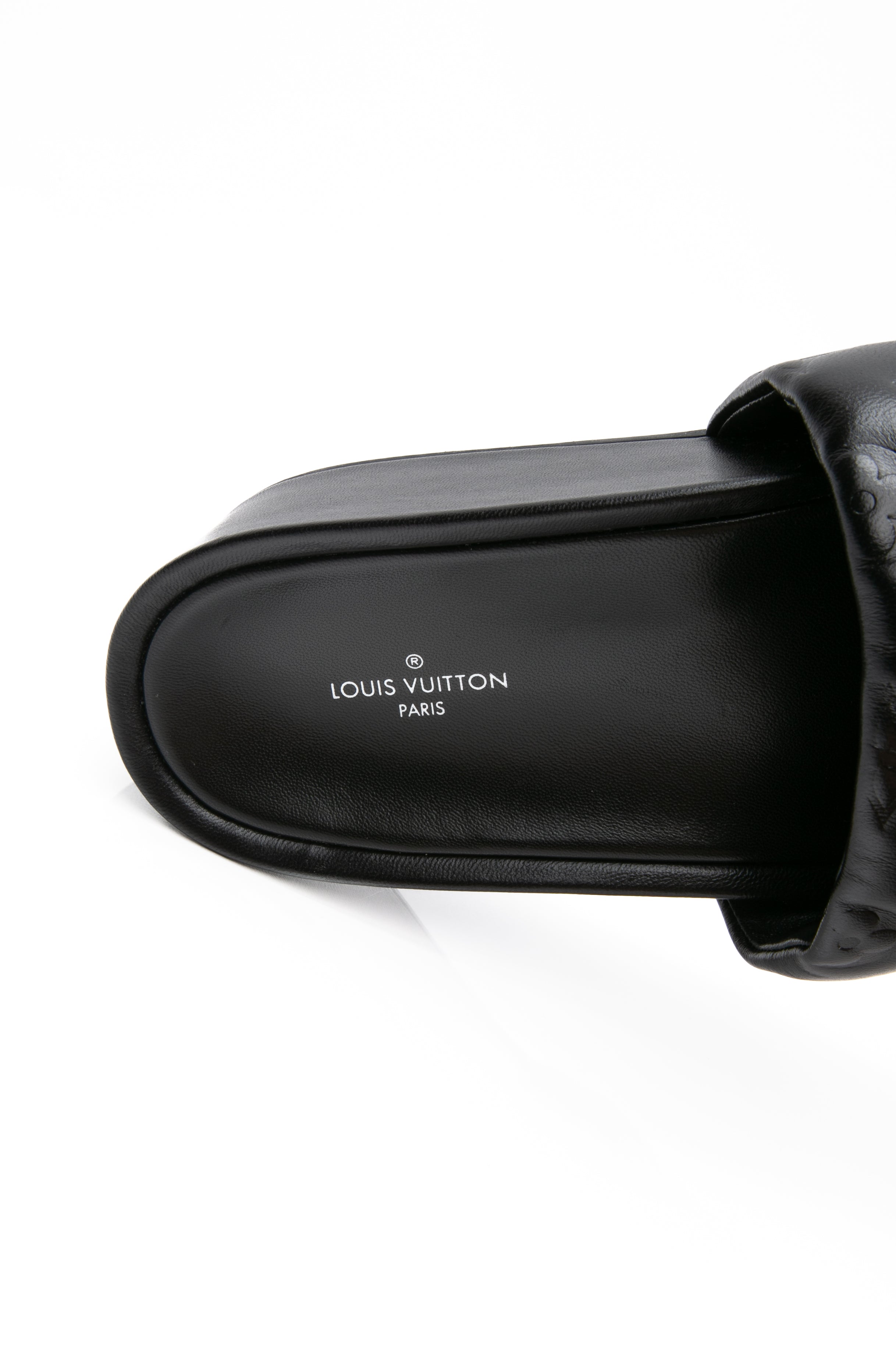 LOUIS VUITTON Lambskin Embossed Monogram Jumbo Flatform Mule Sandals 37.5