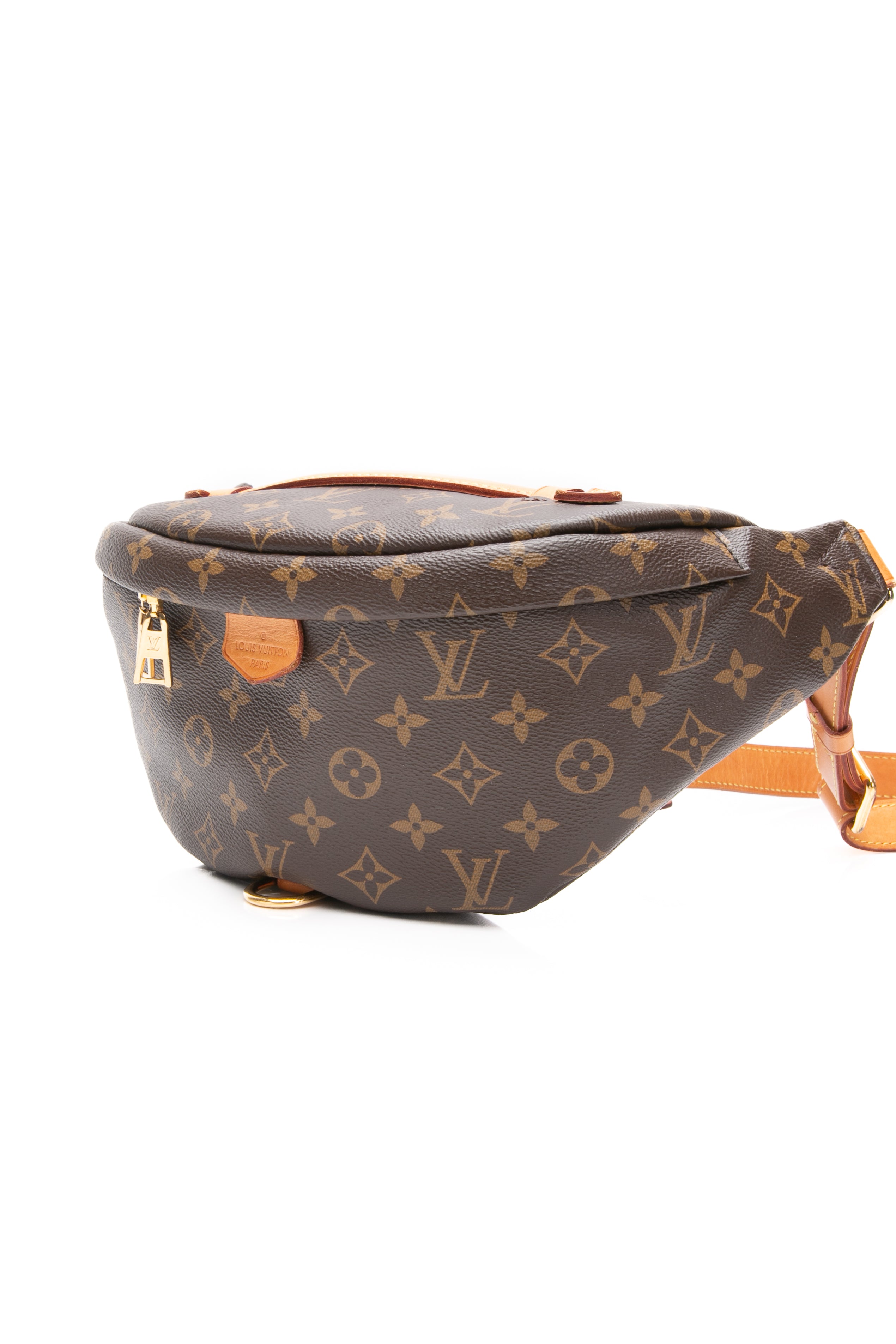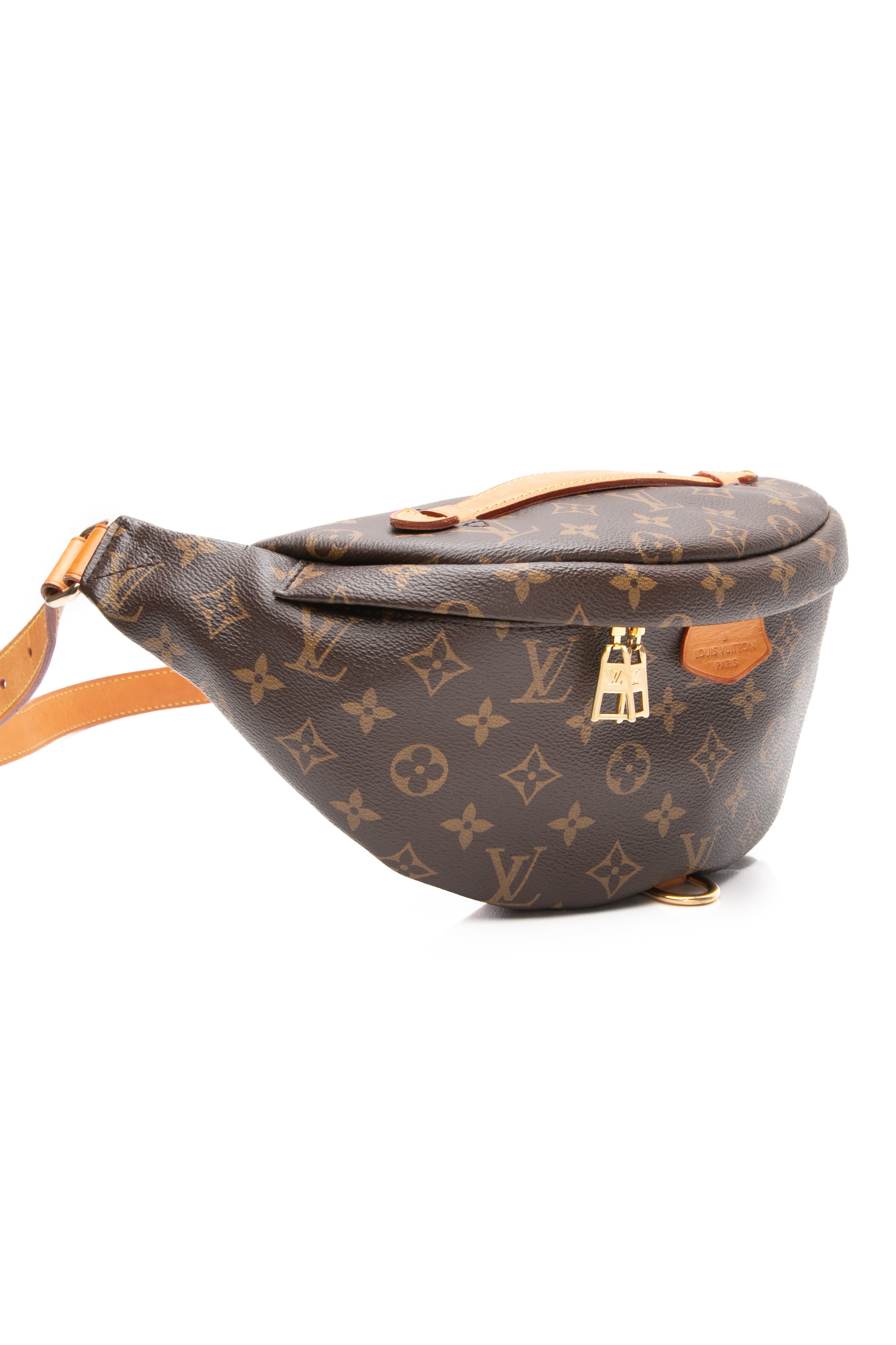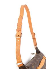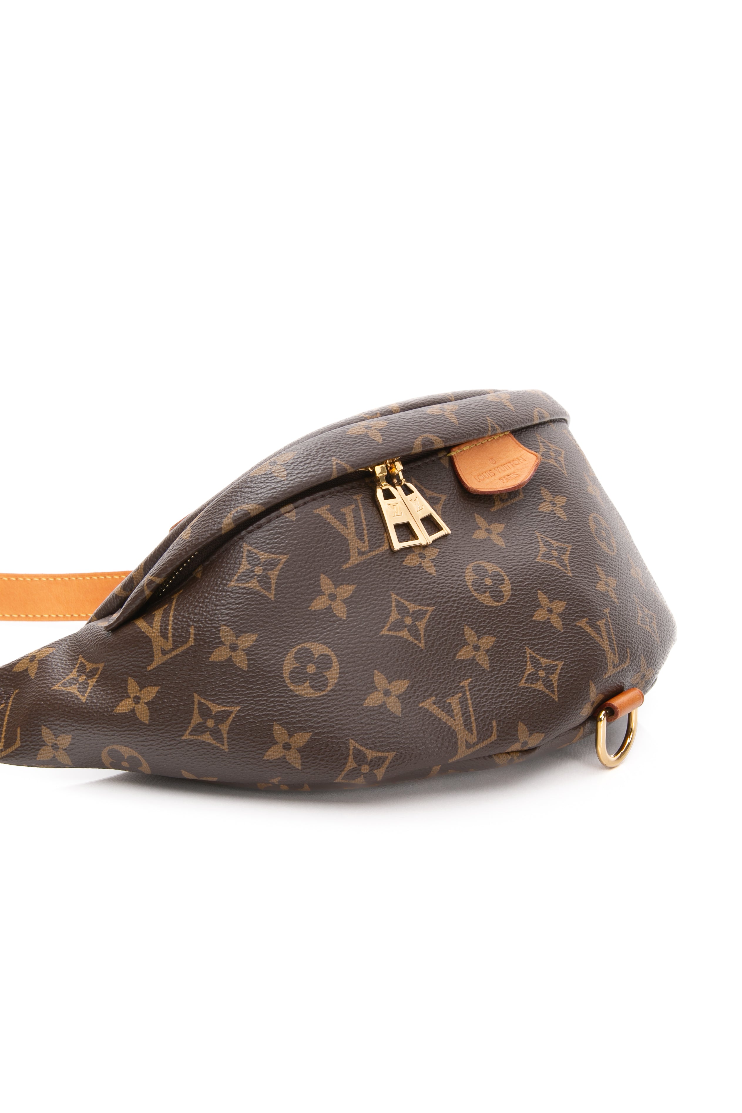 This stylish bum bag is created out of traditional Louis Vuitton monogram on coated canvas. It features a vachetta cowhide leather adjustable strap that can be worn around the waist or over the shoulder, as well as a small zip pocket at the back. The main zipper opens to a black fabric interior.