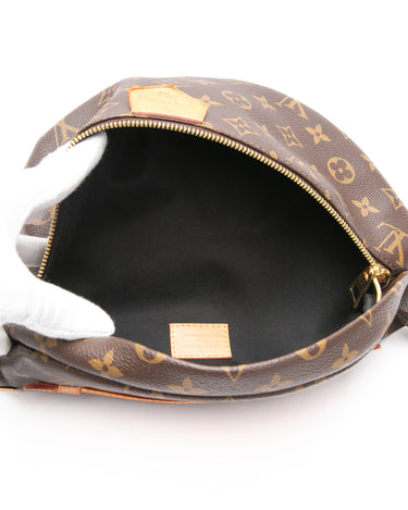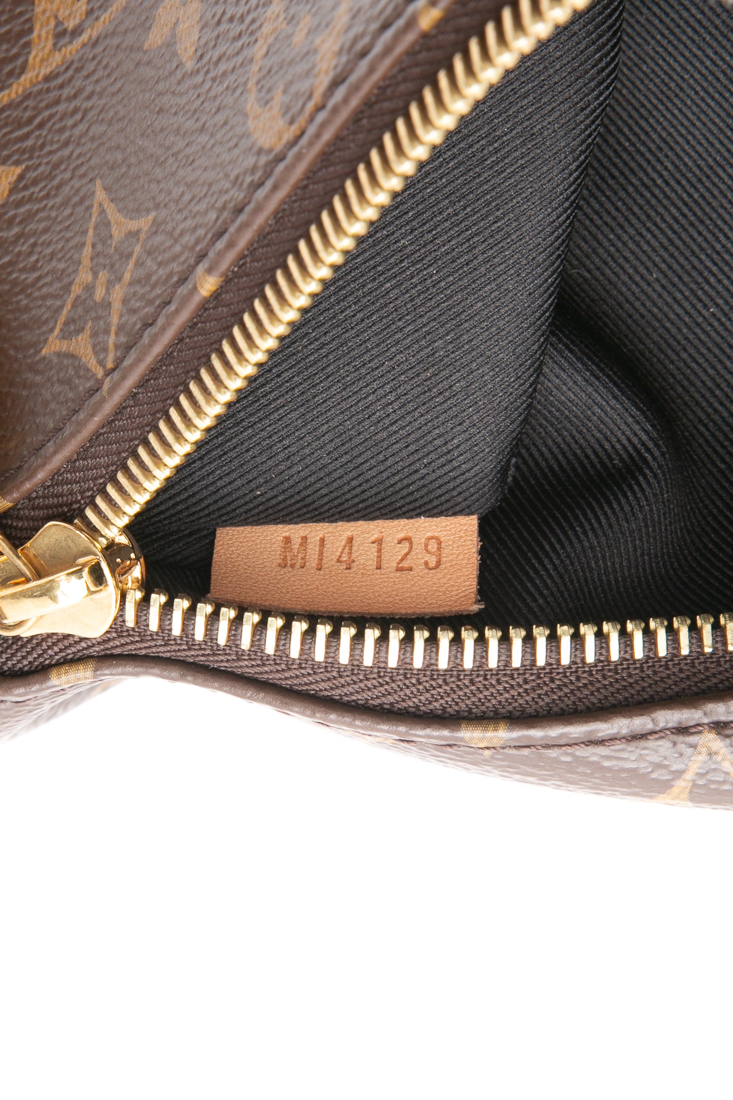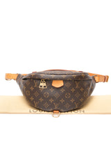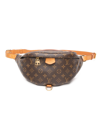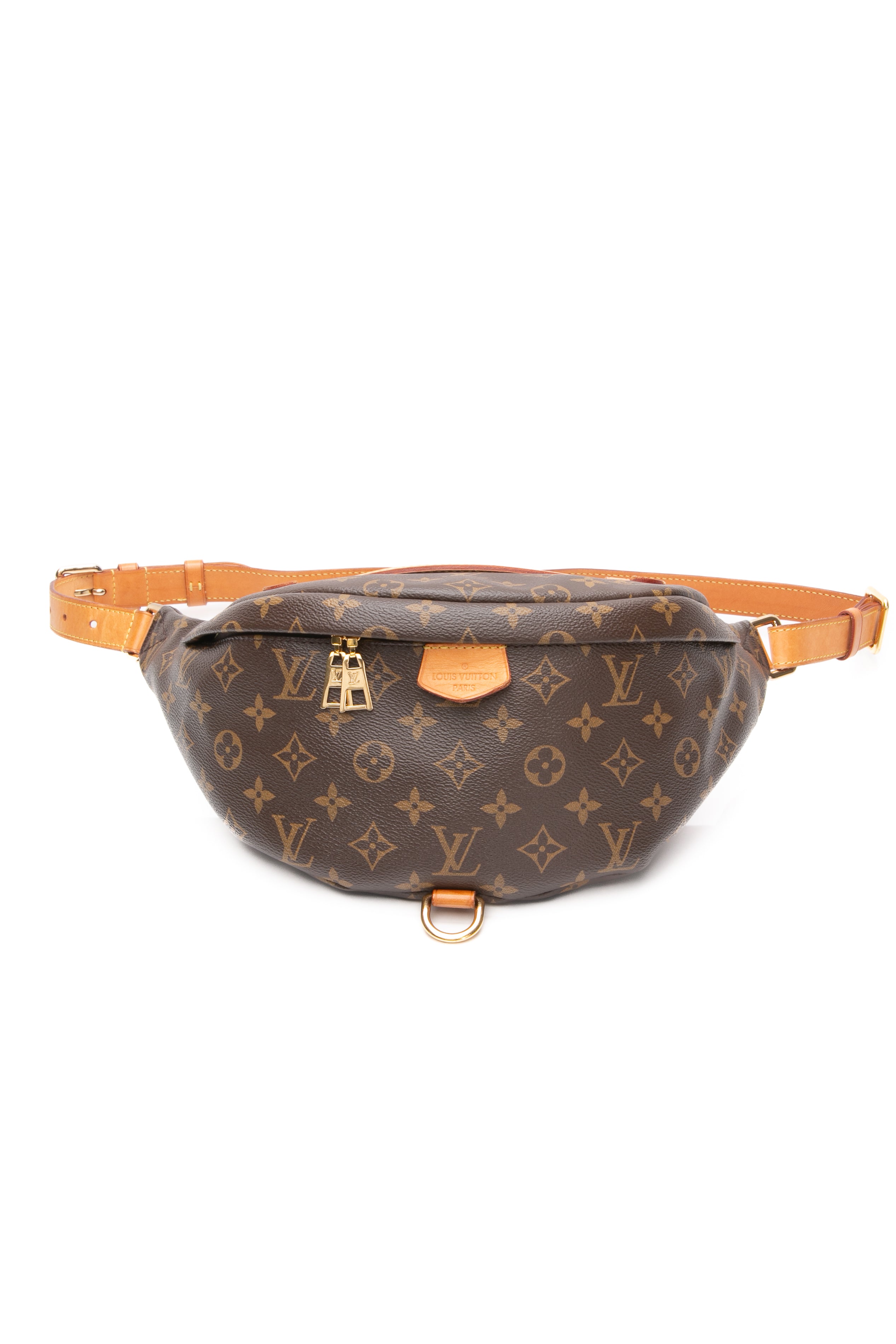 This stylish bum bag is created out of traditional Louis Vuitton monogram on coated canvas. It features a vachetta cowhide leather adjustable strap that can be worn around the waist or over the shoulder, as well as a small zip pocket at the back. The main zipper opens to a black fabric interior.
