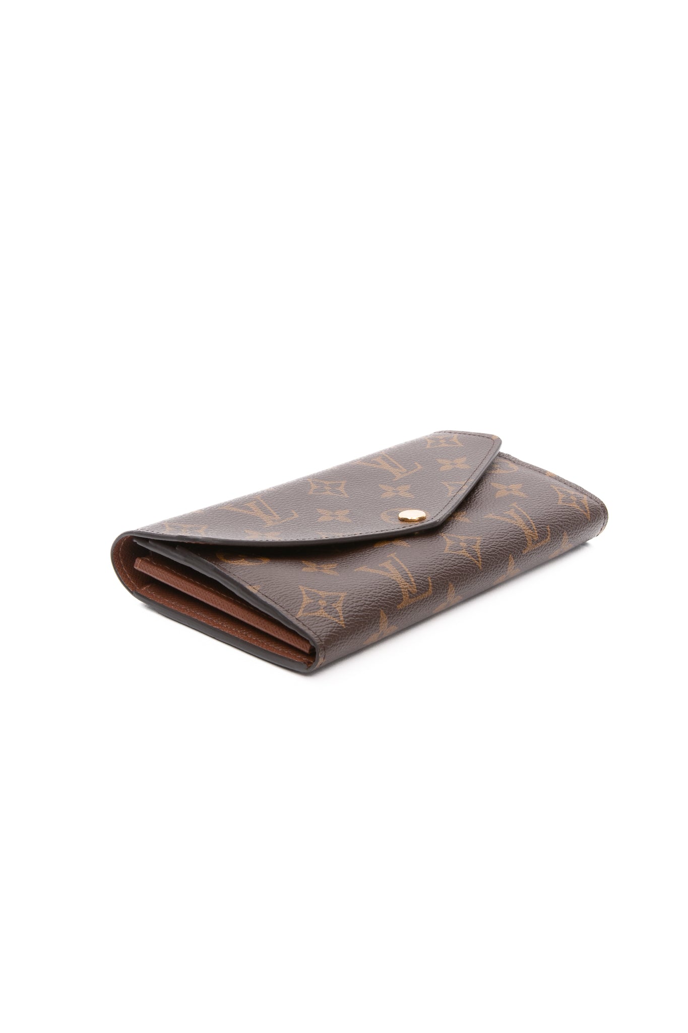 One of Louis Vuitton's classic models, the Sarah wallet combines Monogram canvas with a grained-leather lining. Its elegant envelope-style design conceals a spacious interior with two large compartments, a central zipped coin pocket and multiple card slots. The perfect choice to keep all essentials in one safe place.