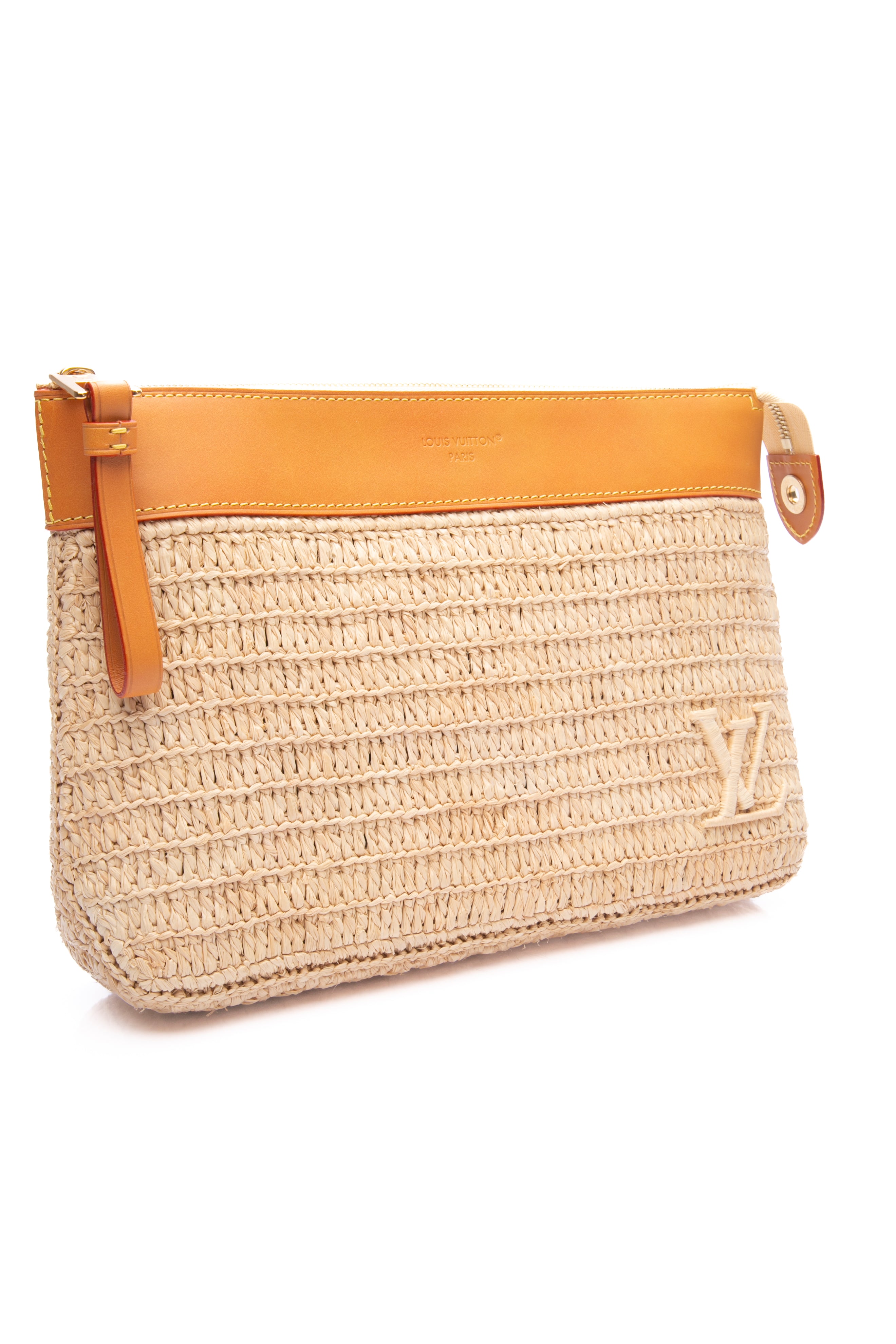 LOUIS VUITTON Pochette Voyage Souple Raffia with generic crossbody converter kit (New)