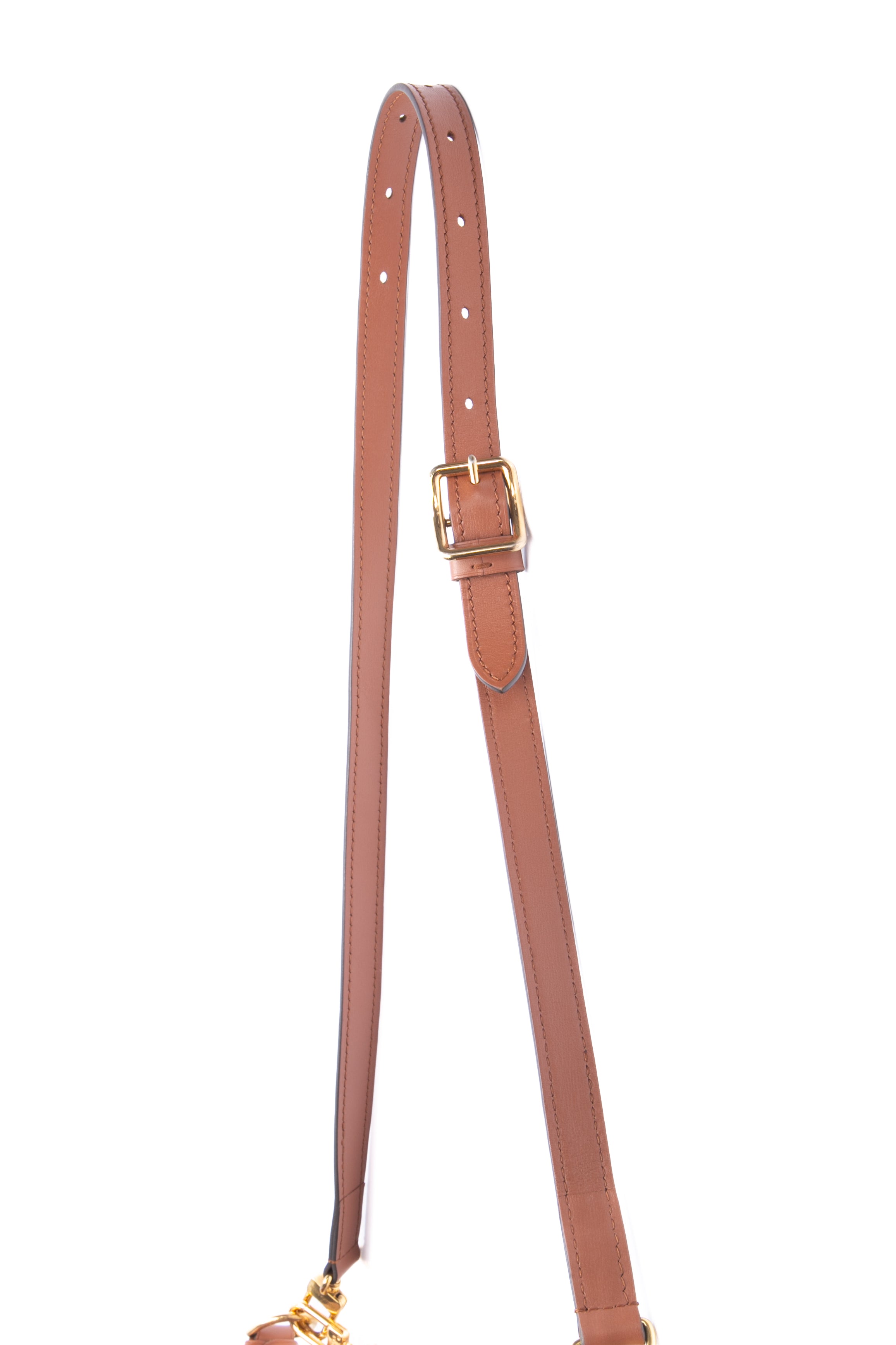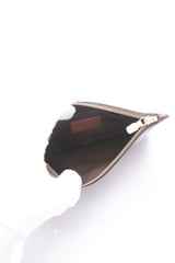 The bag features a gold chain strap, a leather shoulder strap, and gold hardware. The top zipper opens to a brown fabric interior with a matching pochette.