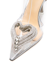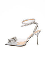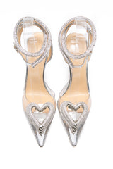 MACH & MACH Silver and Transparent PVC Triple Heart High Heels 39 (New)