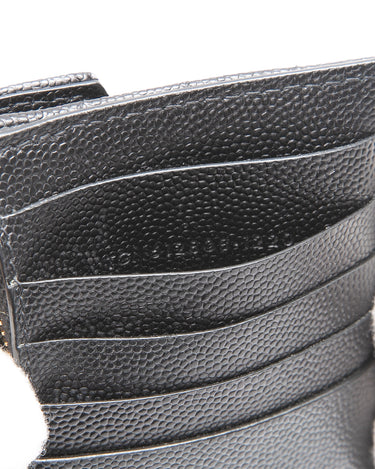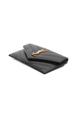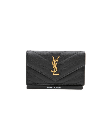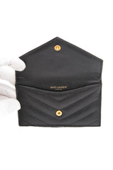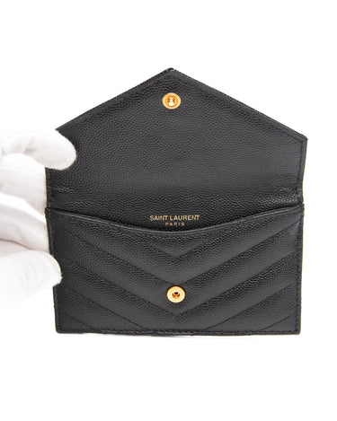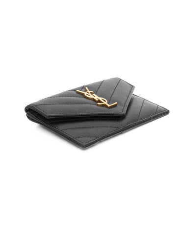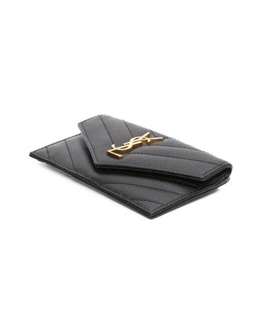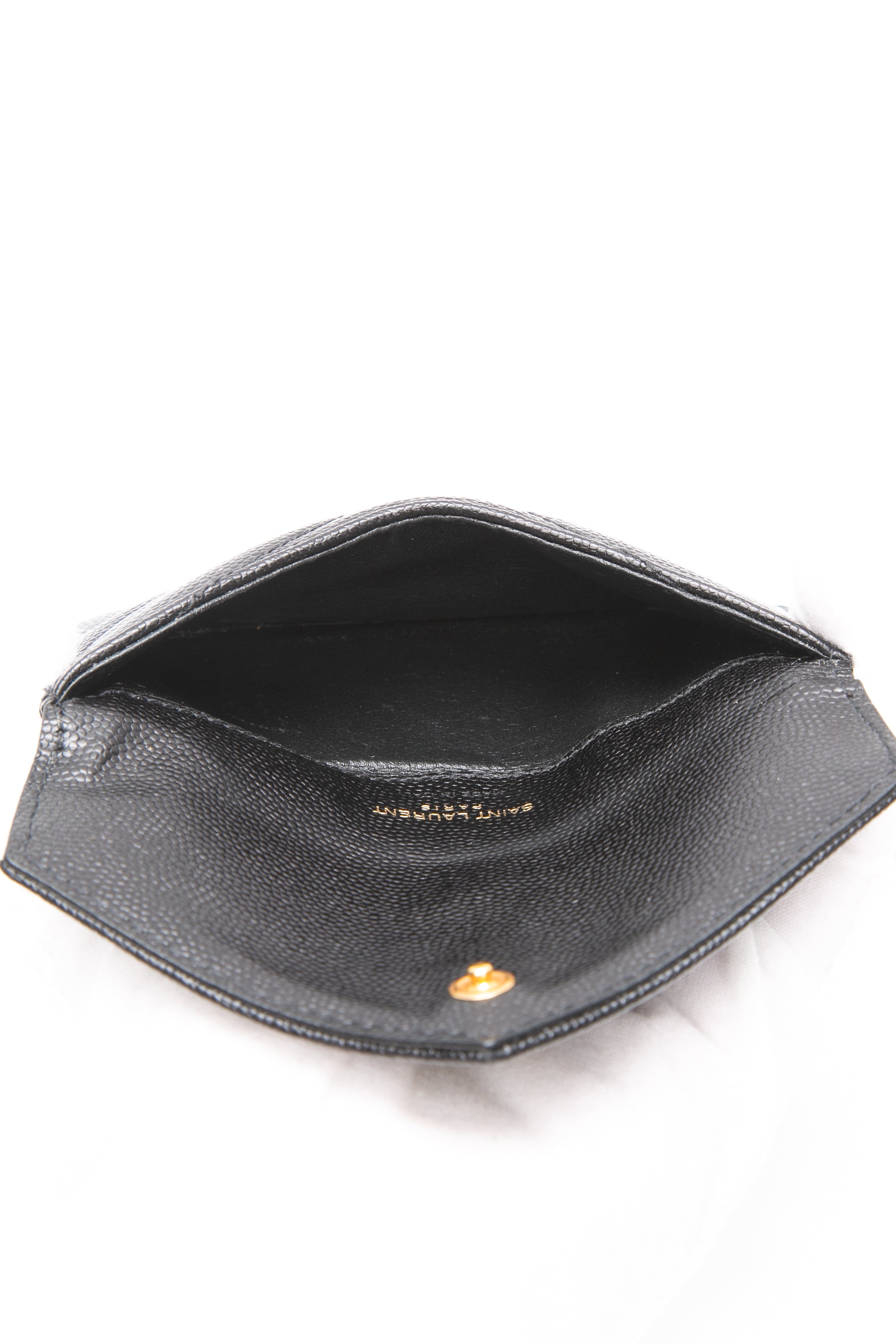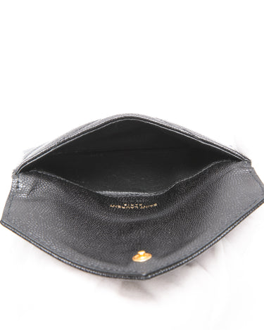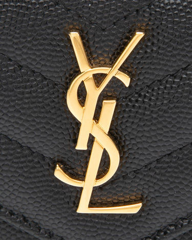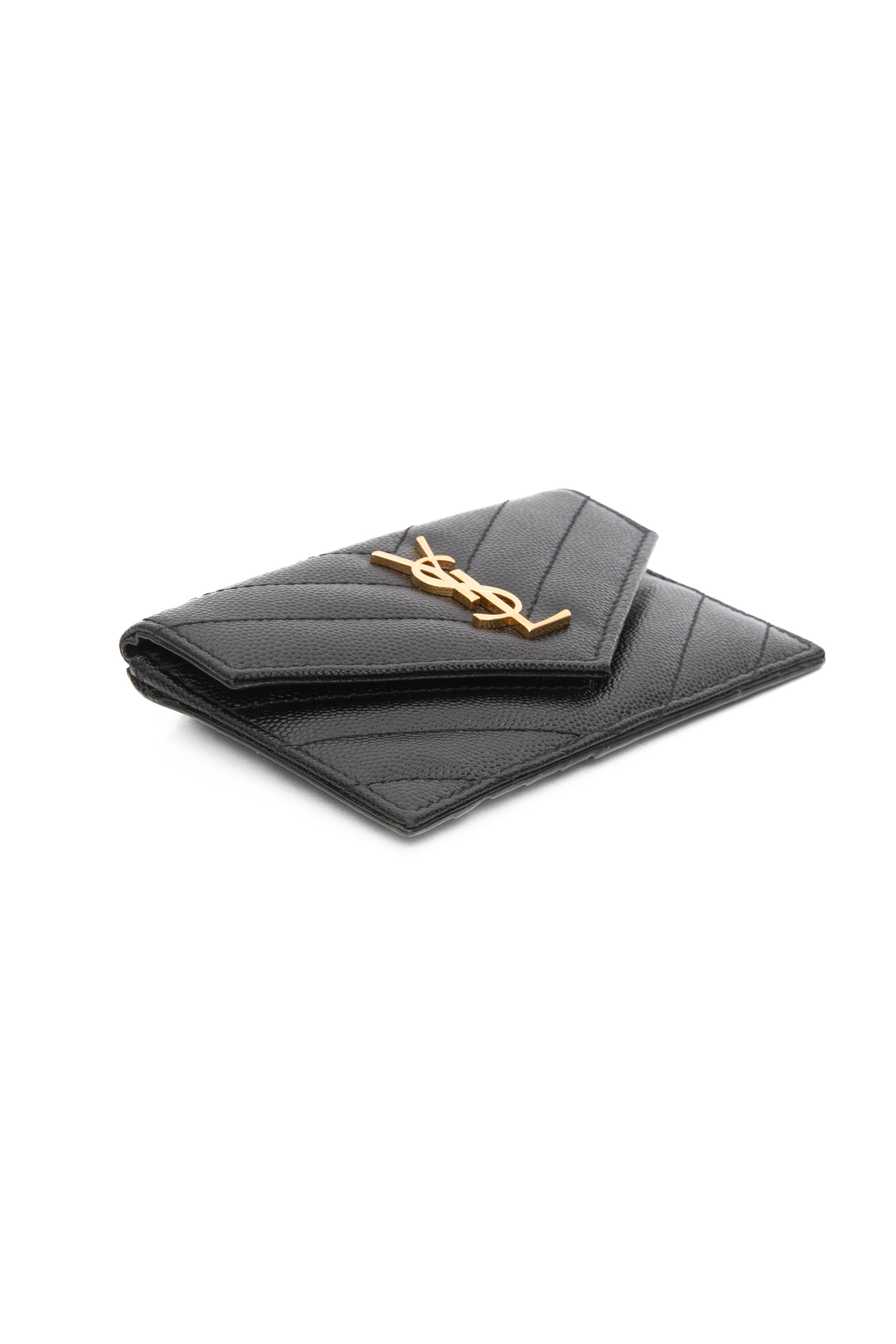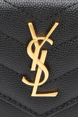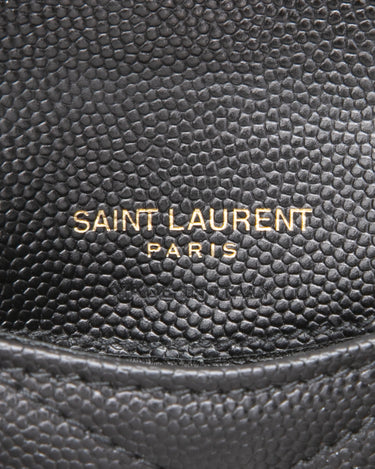 SAINT LAURENT Black Grain de Poudre Leather Cassandre Matelasse Fragments Flap Card Case