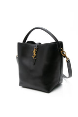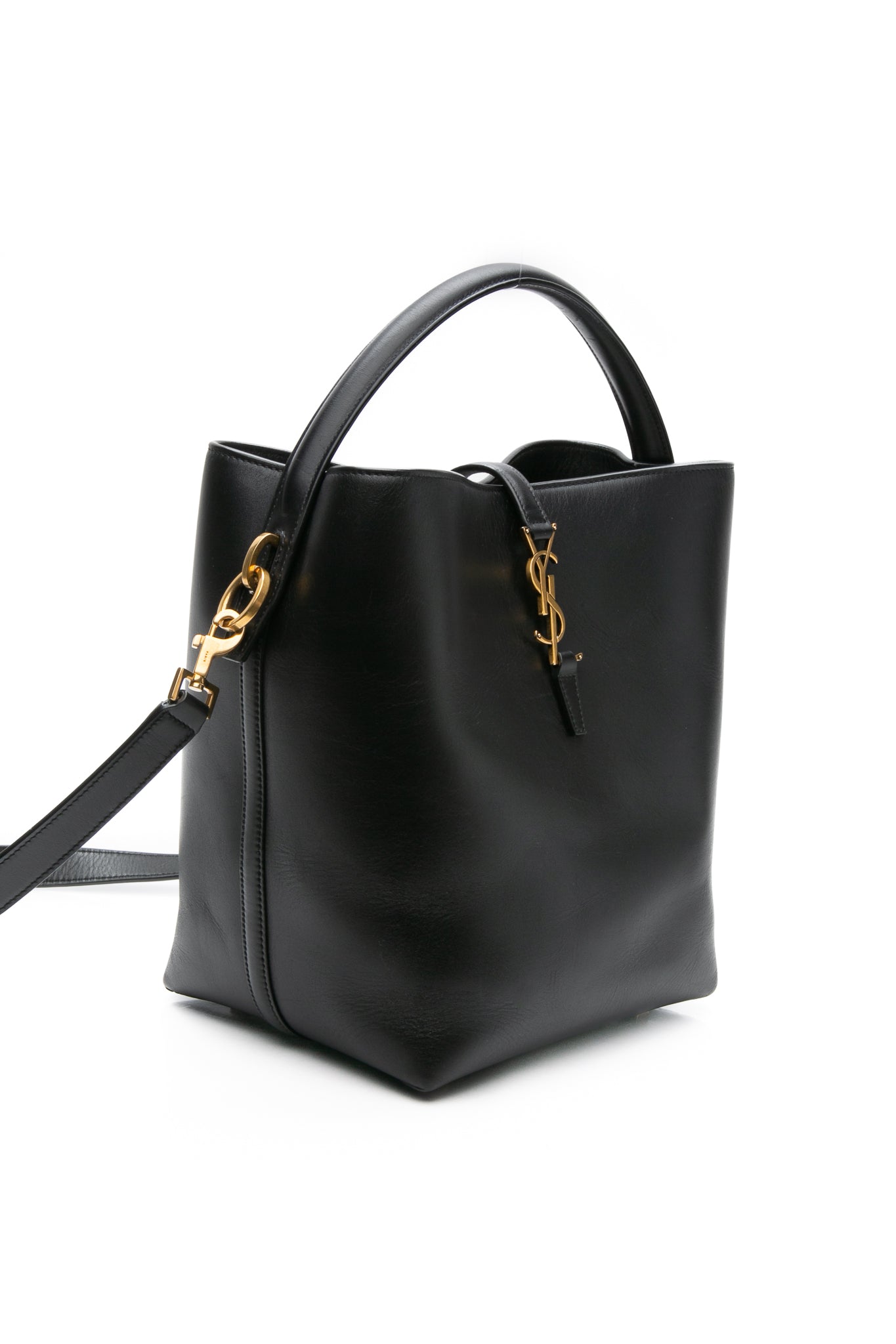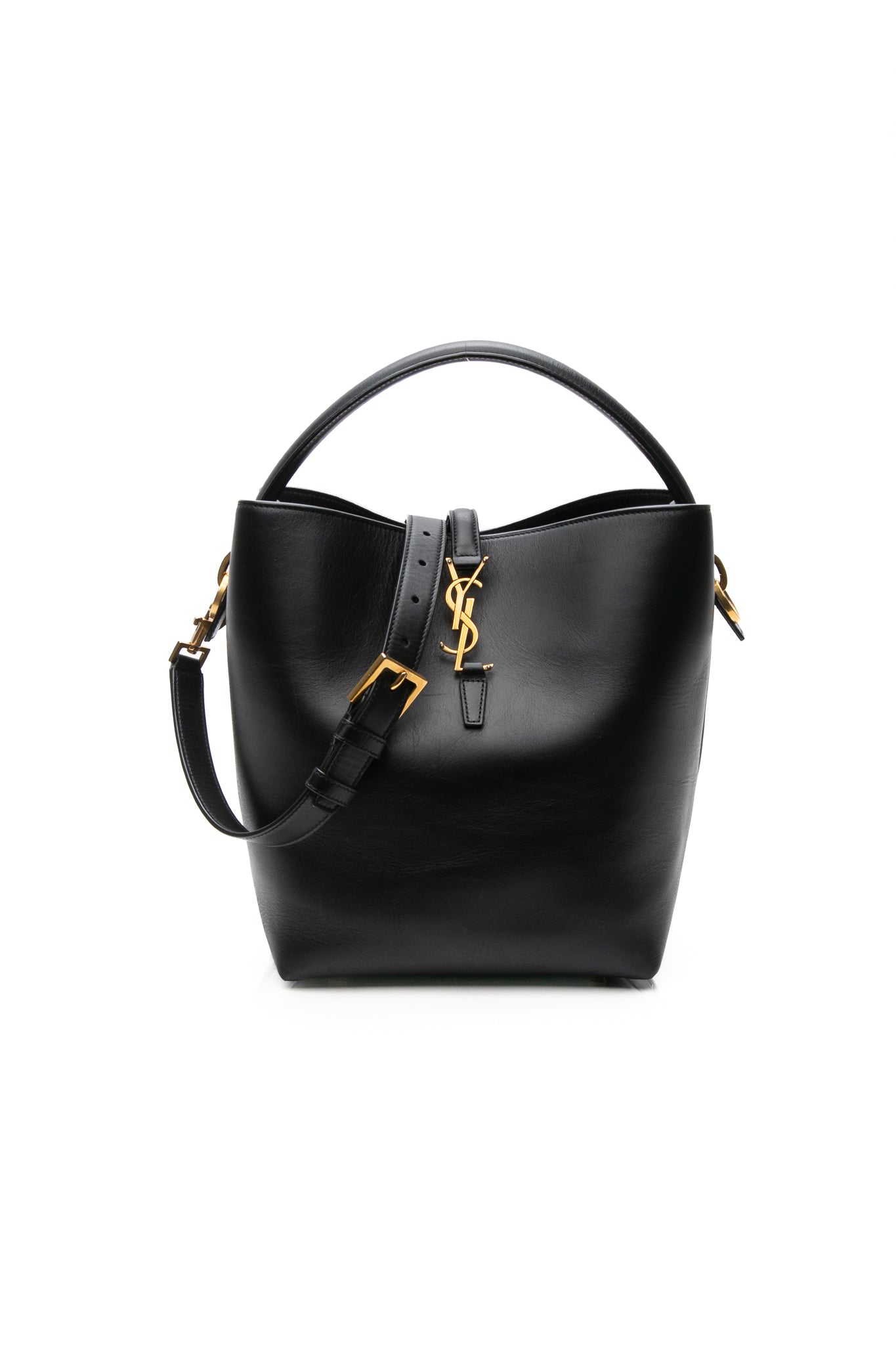 SAINT LAURENT Black LE 37 in Shiny Leather Bucket Bag