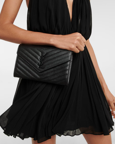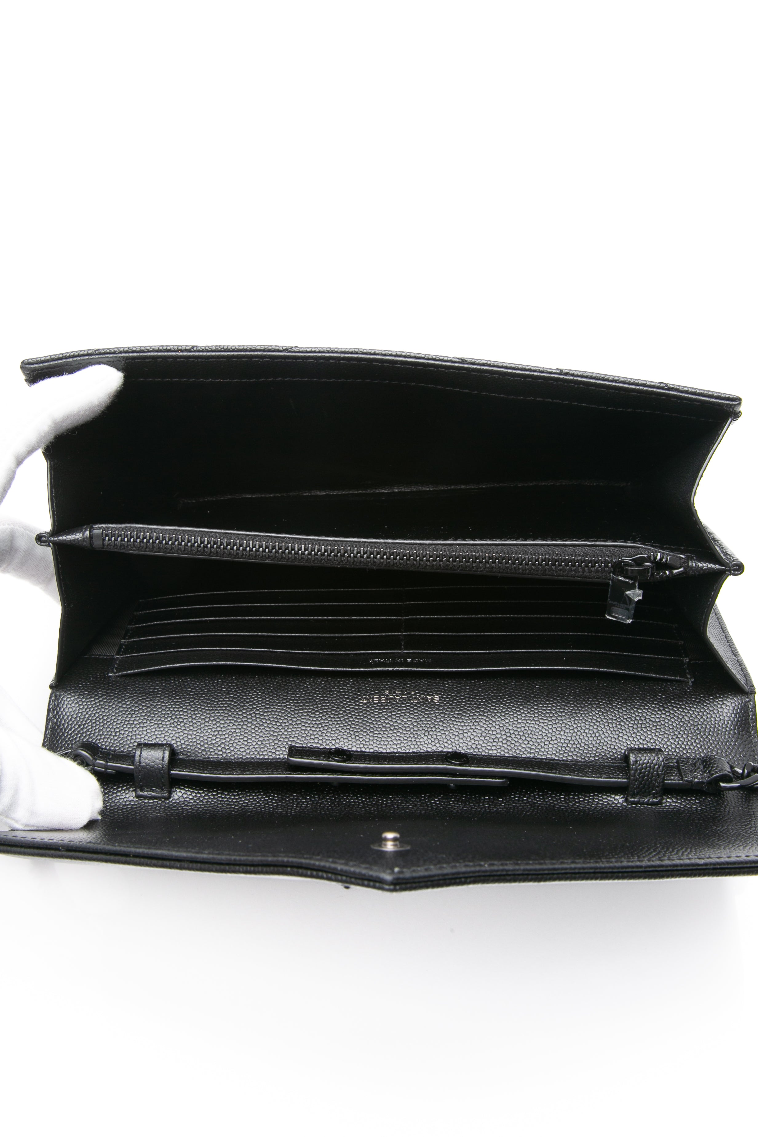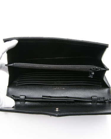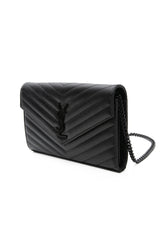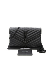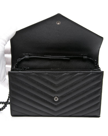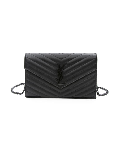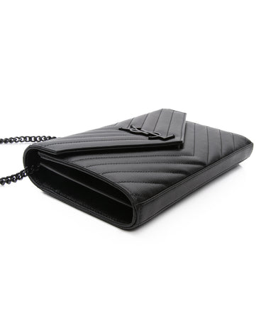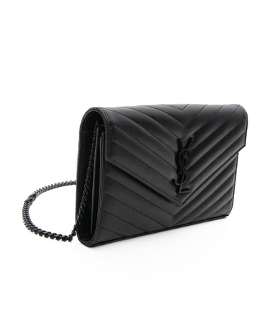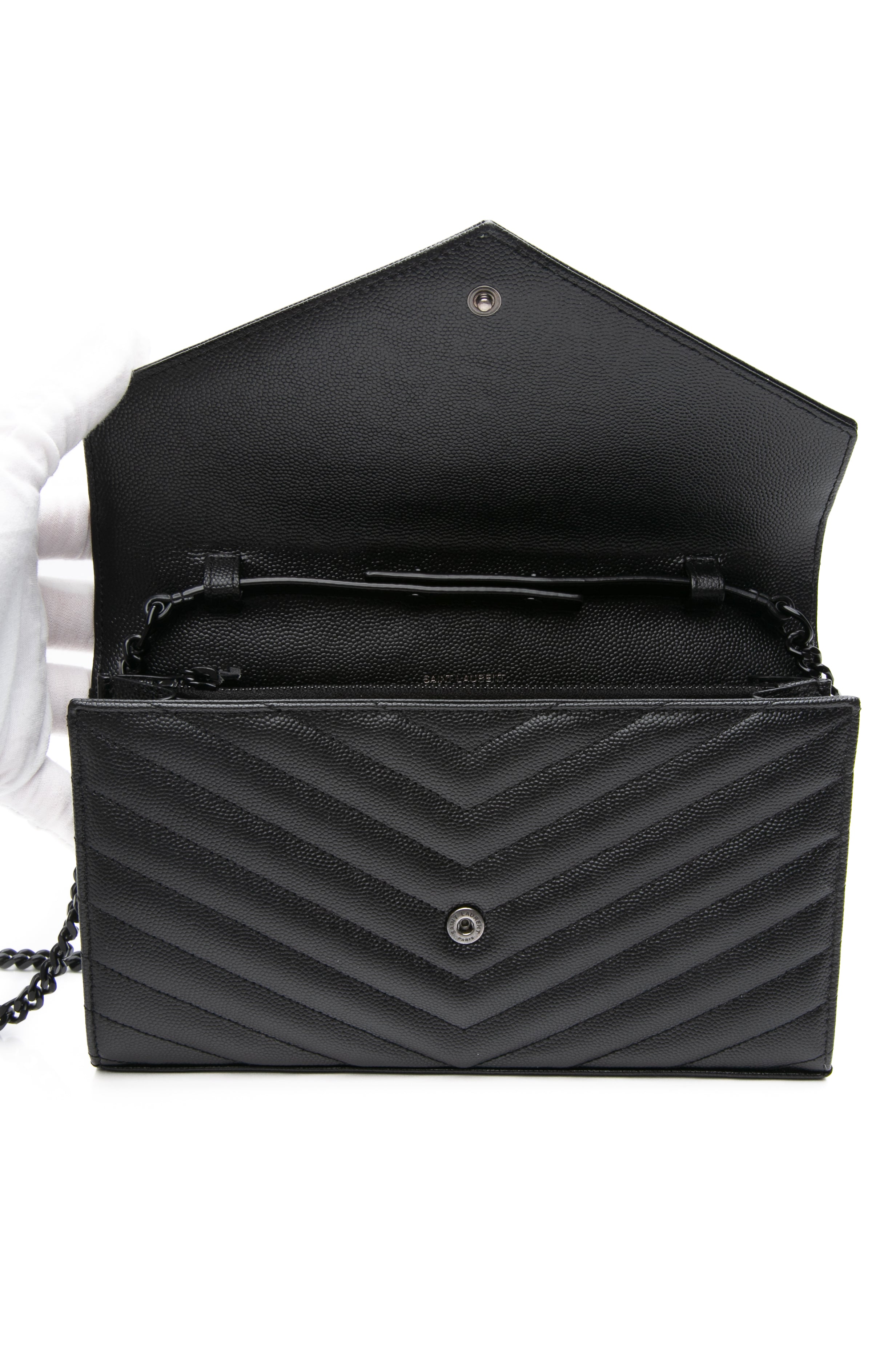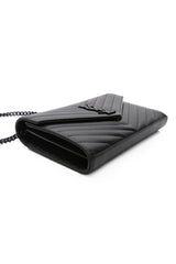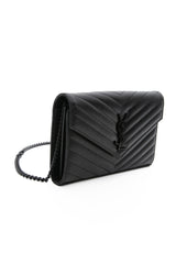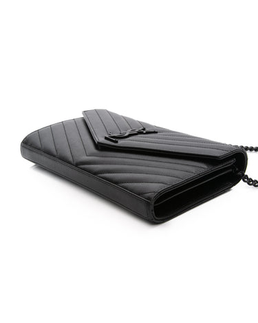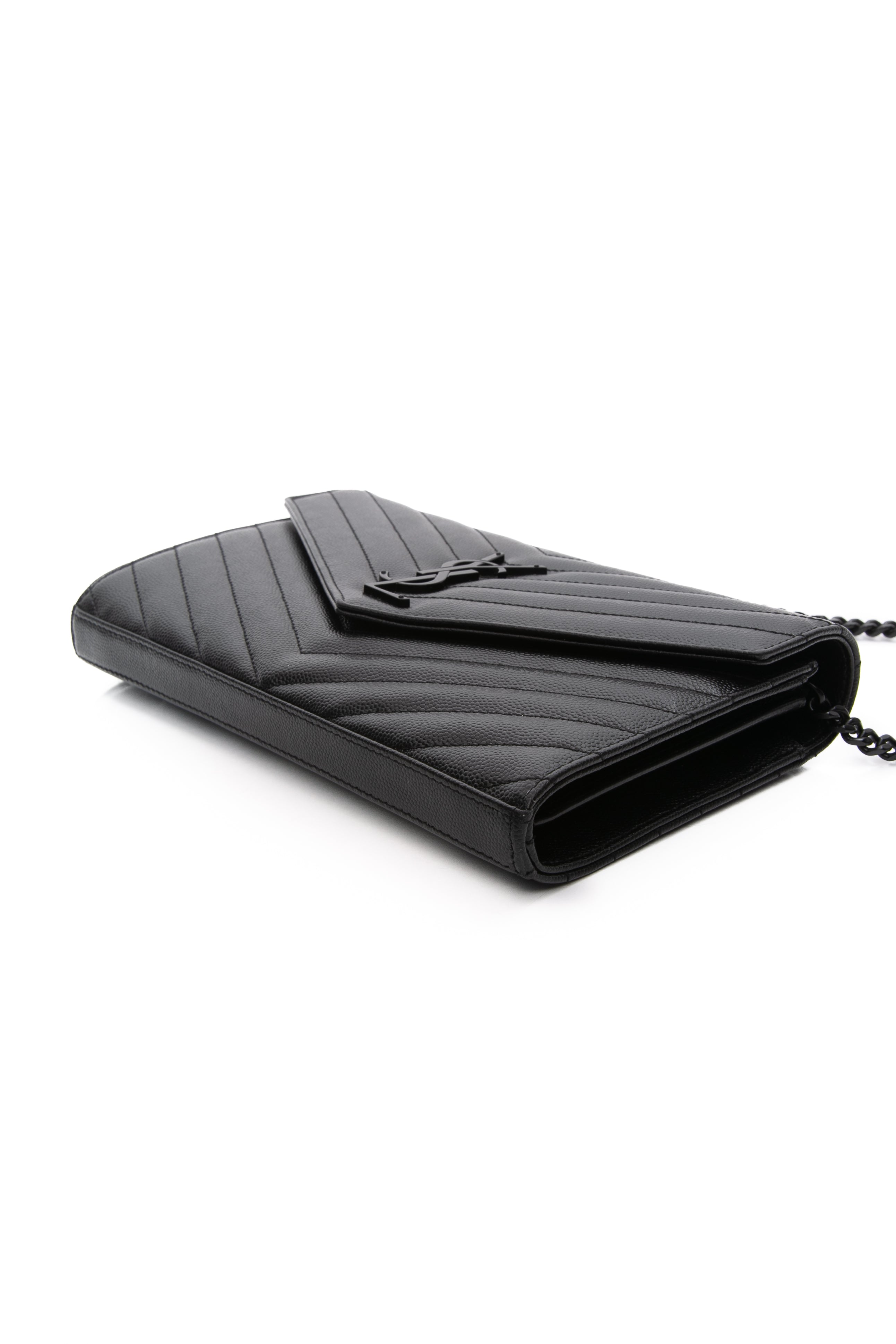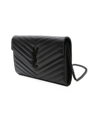 SAINT LAURENT Black on Black Cassandre Matelasse Envelope Chain Wallet