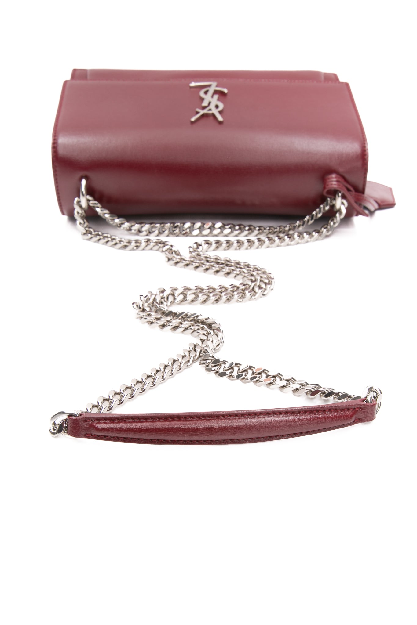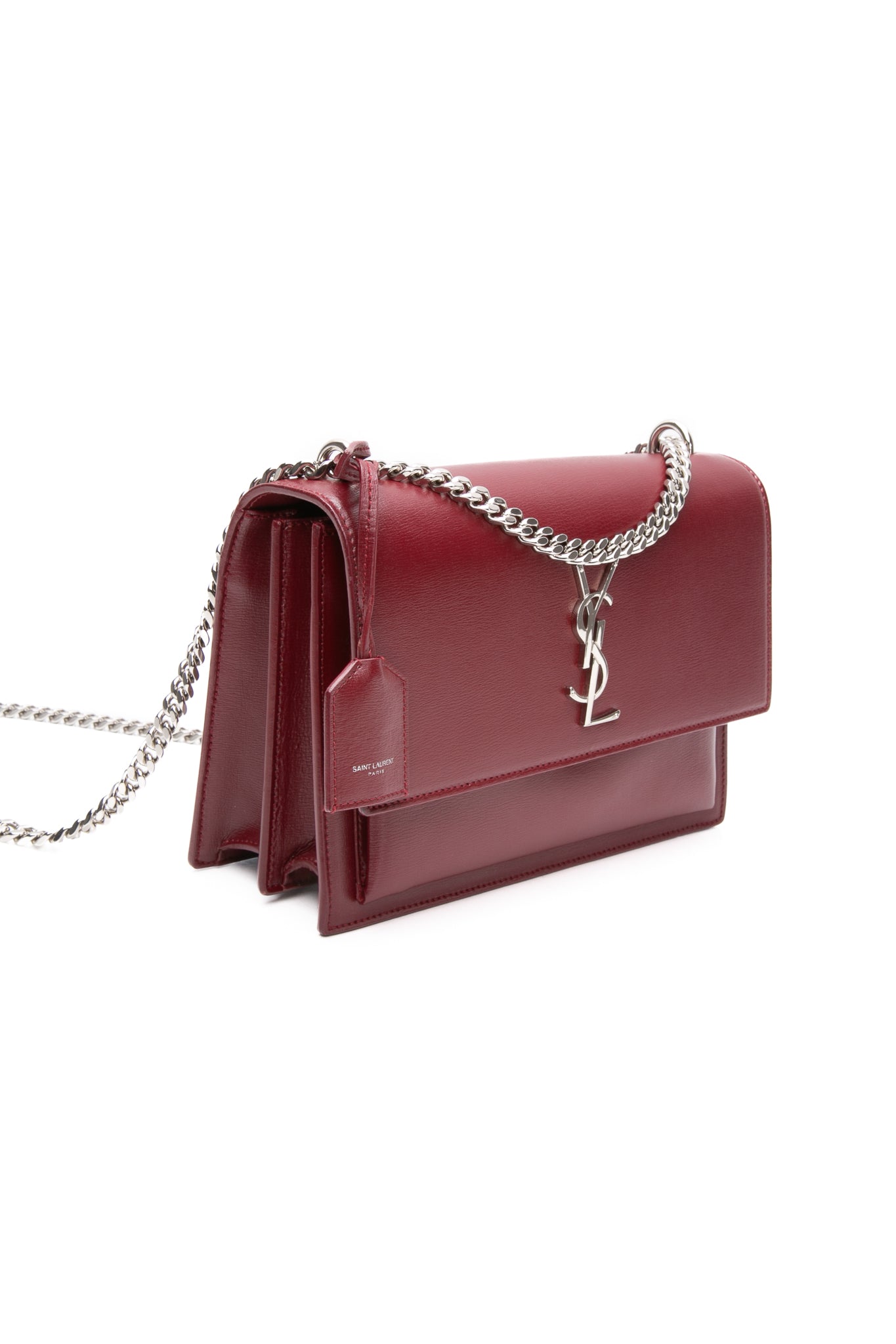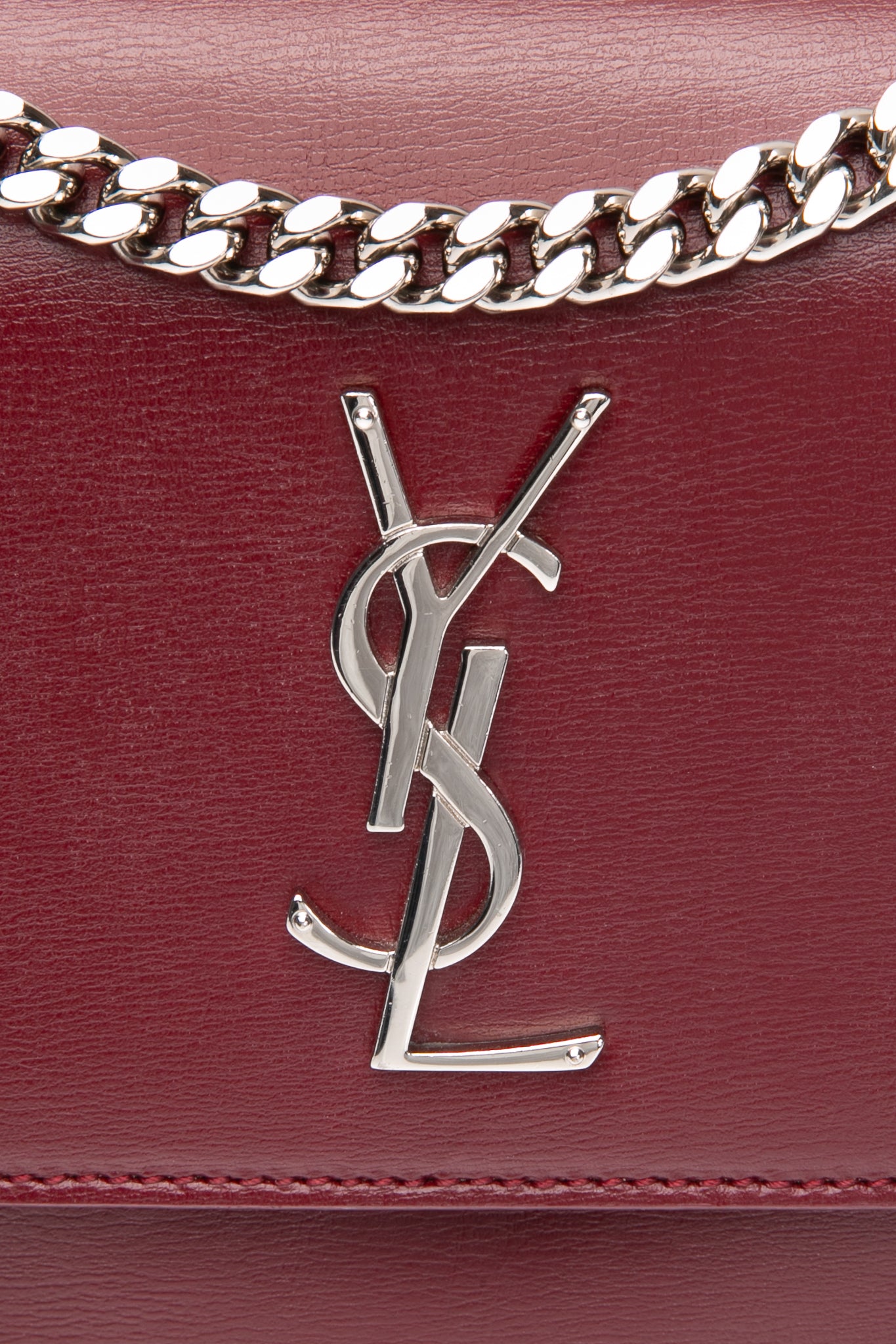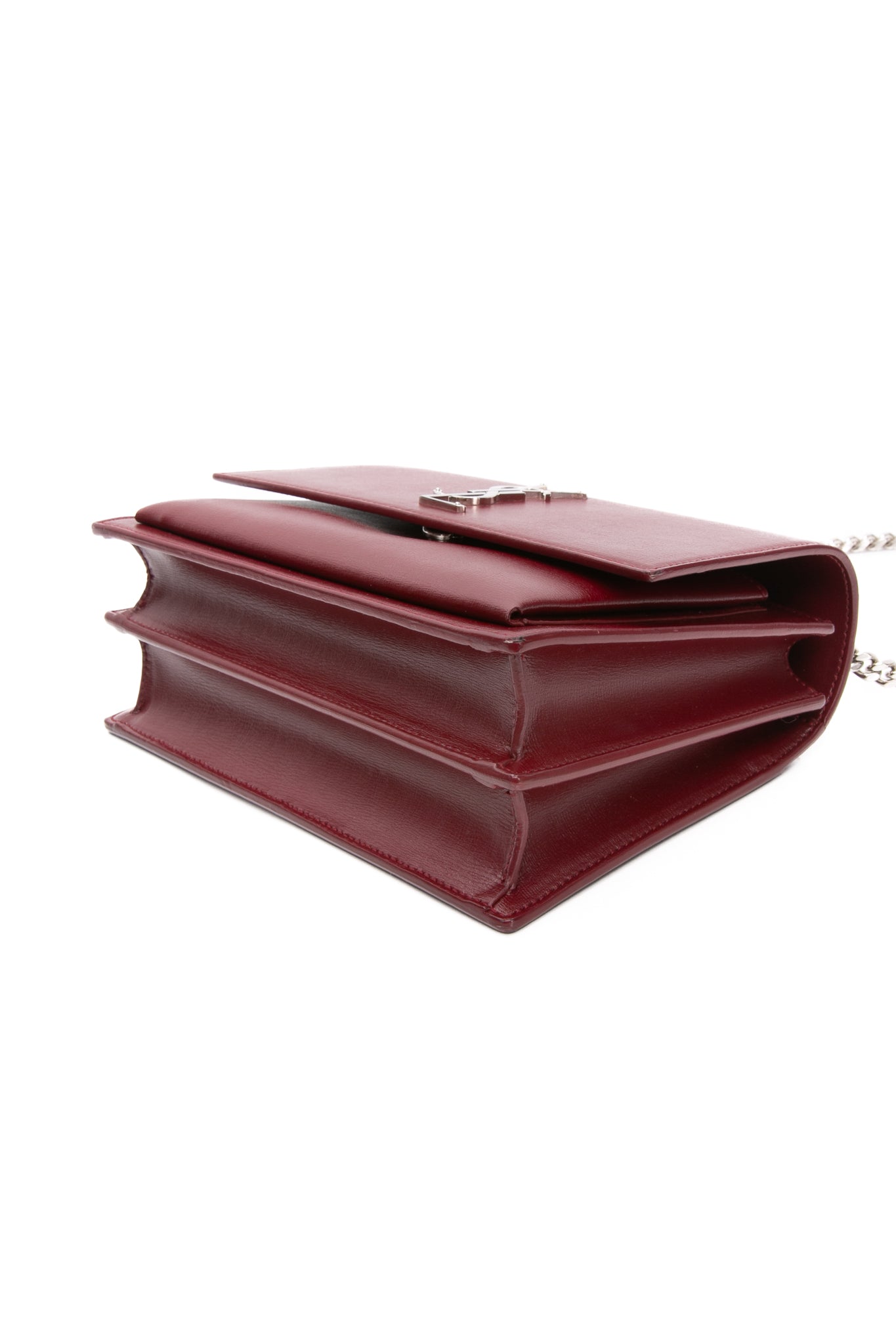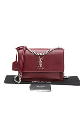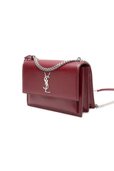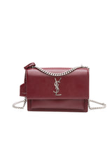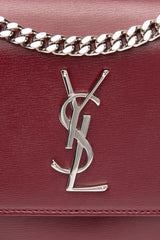 SAINT LAURENT Burgundy Calfskin Leather Medium Monogram Sunset Crossbody Bag