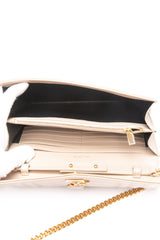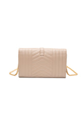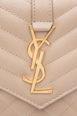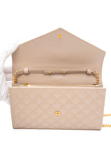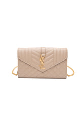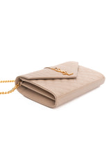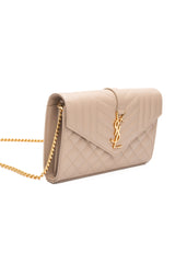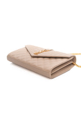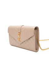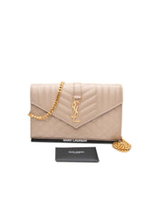 SAINT LAURENT Dark Beige Envelope Triquilt in Grained Leather Wallet on Chain WOC
