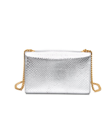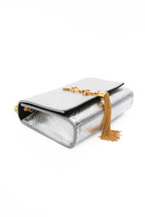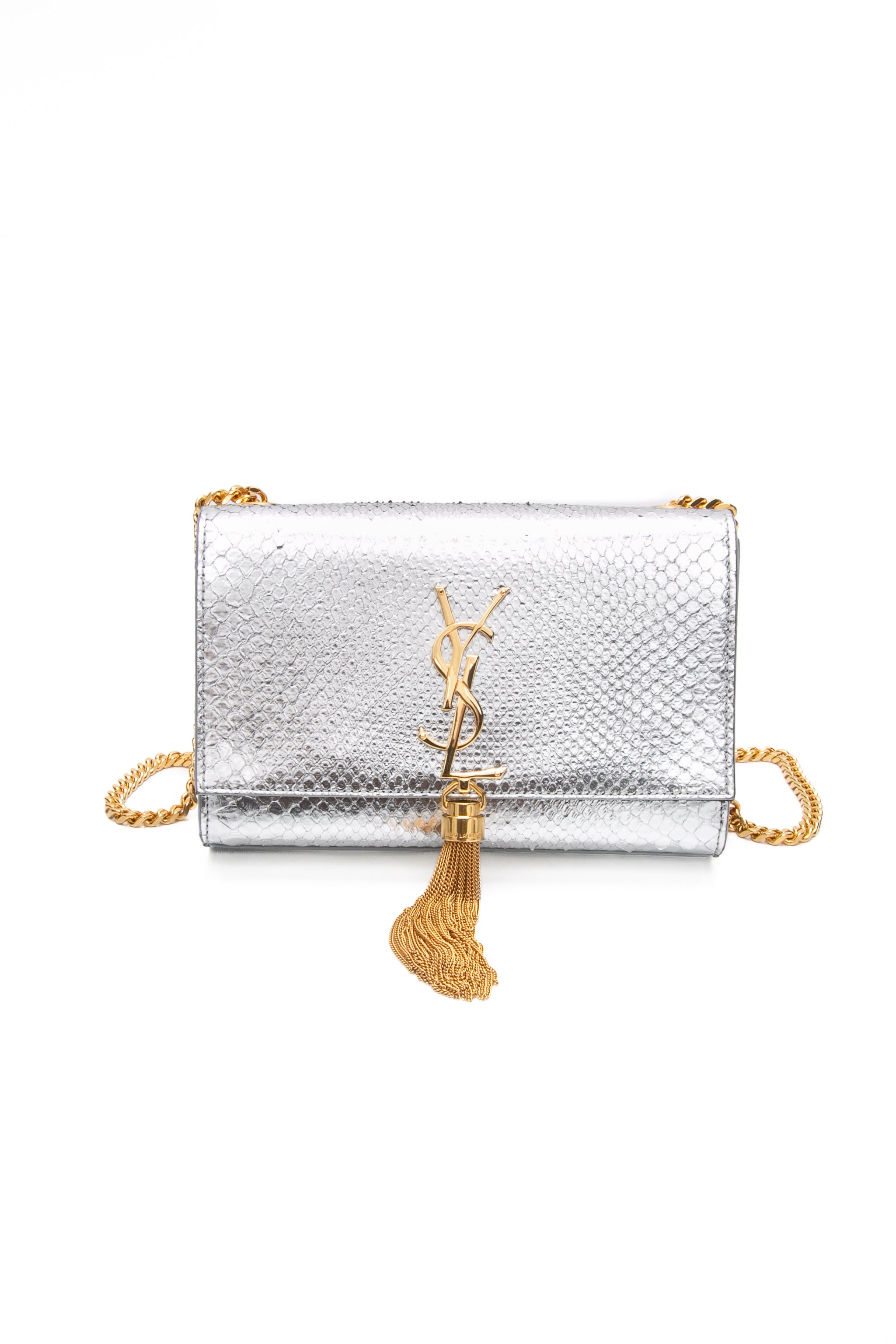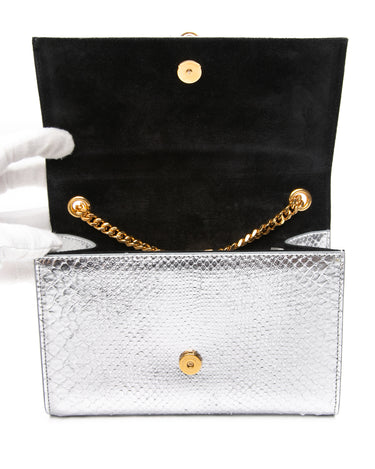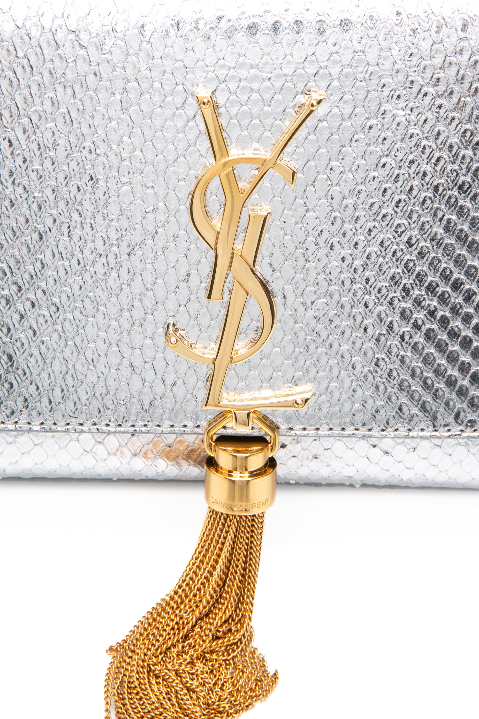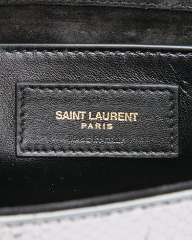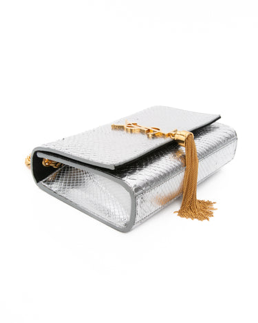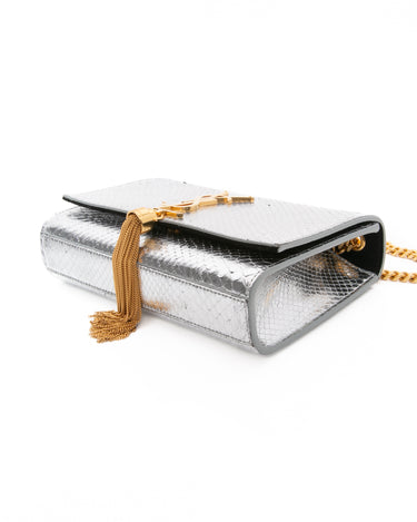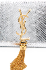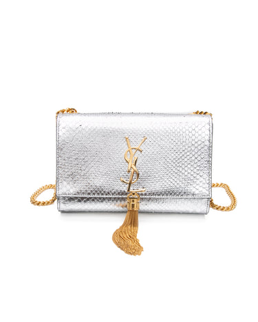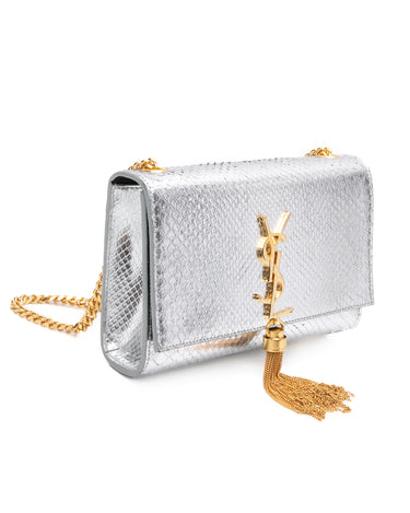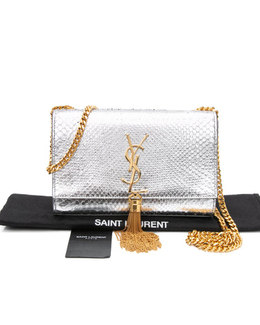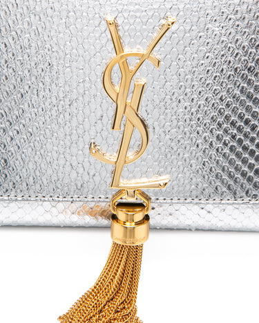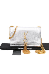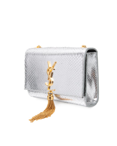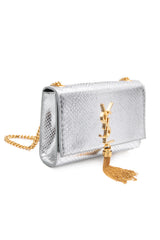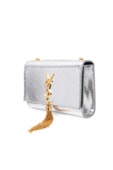 SAINT LAURENT Silver Monogram Python Lamine Moon Small Kate Tassel Crossbody Bag