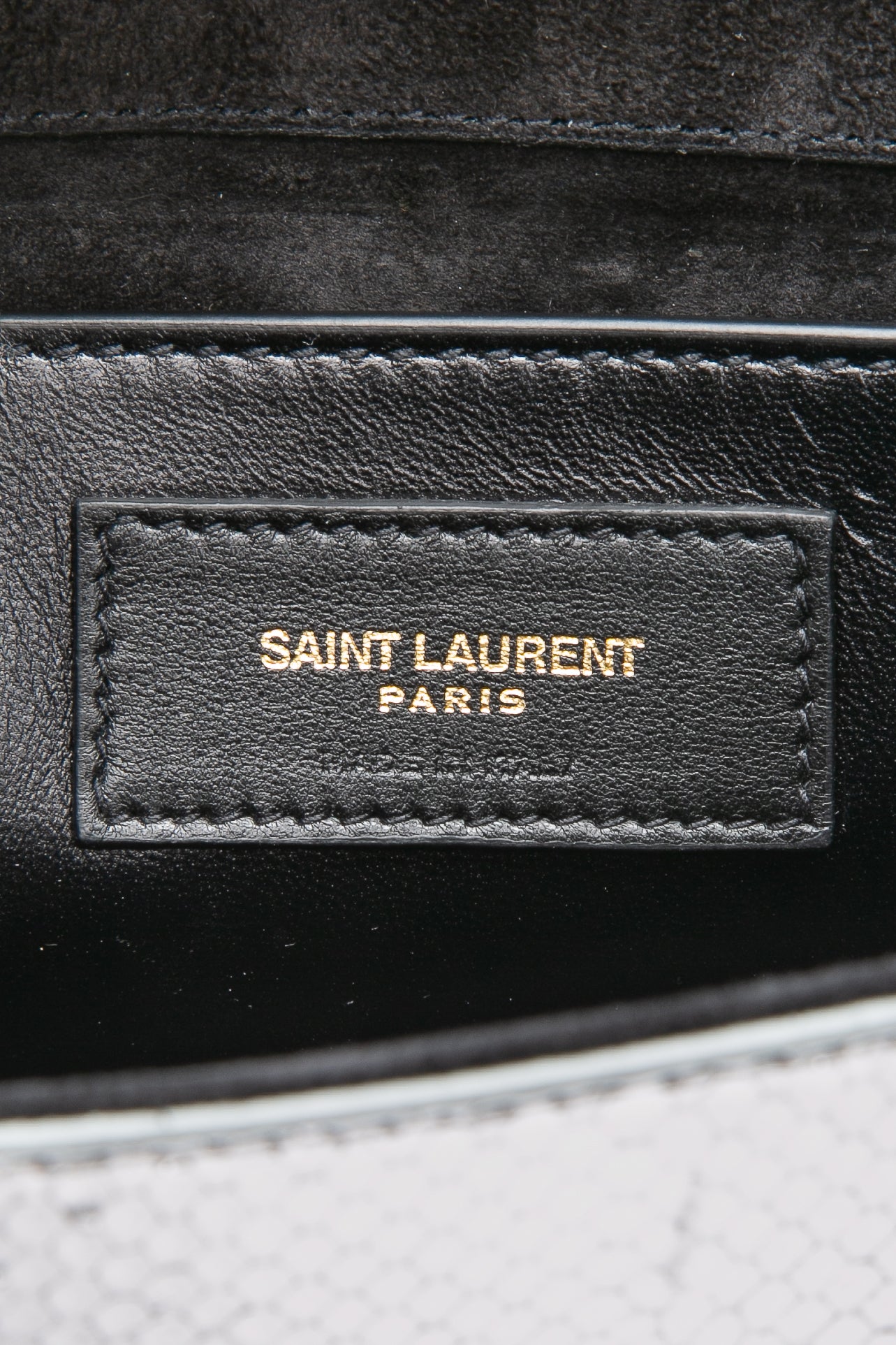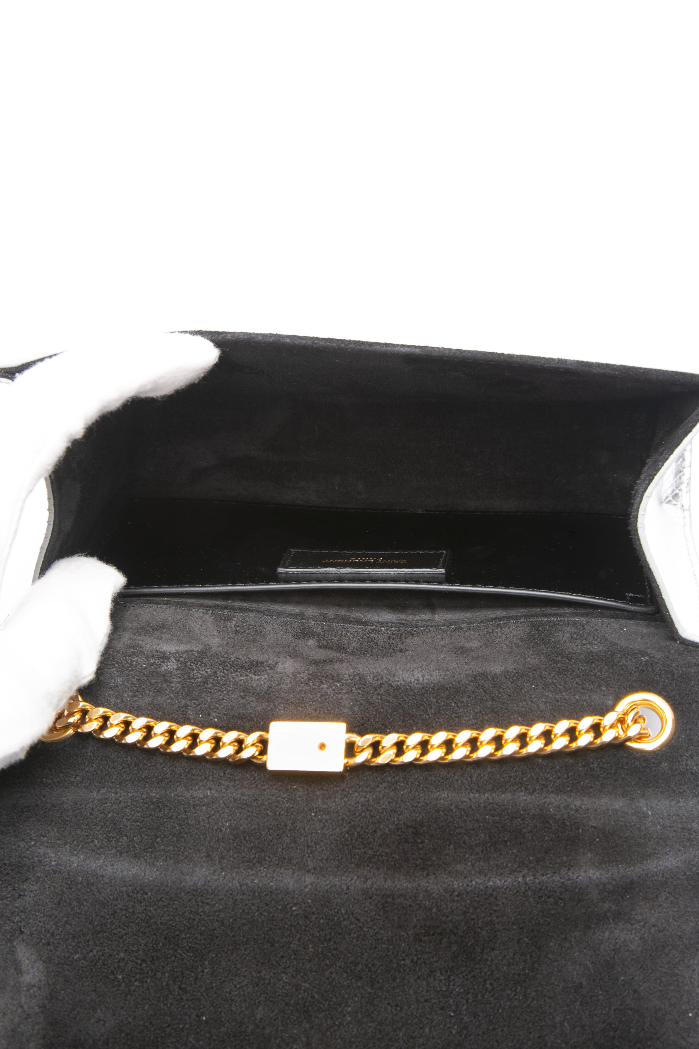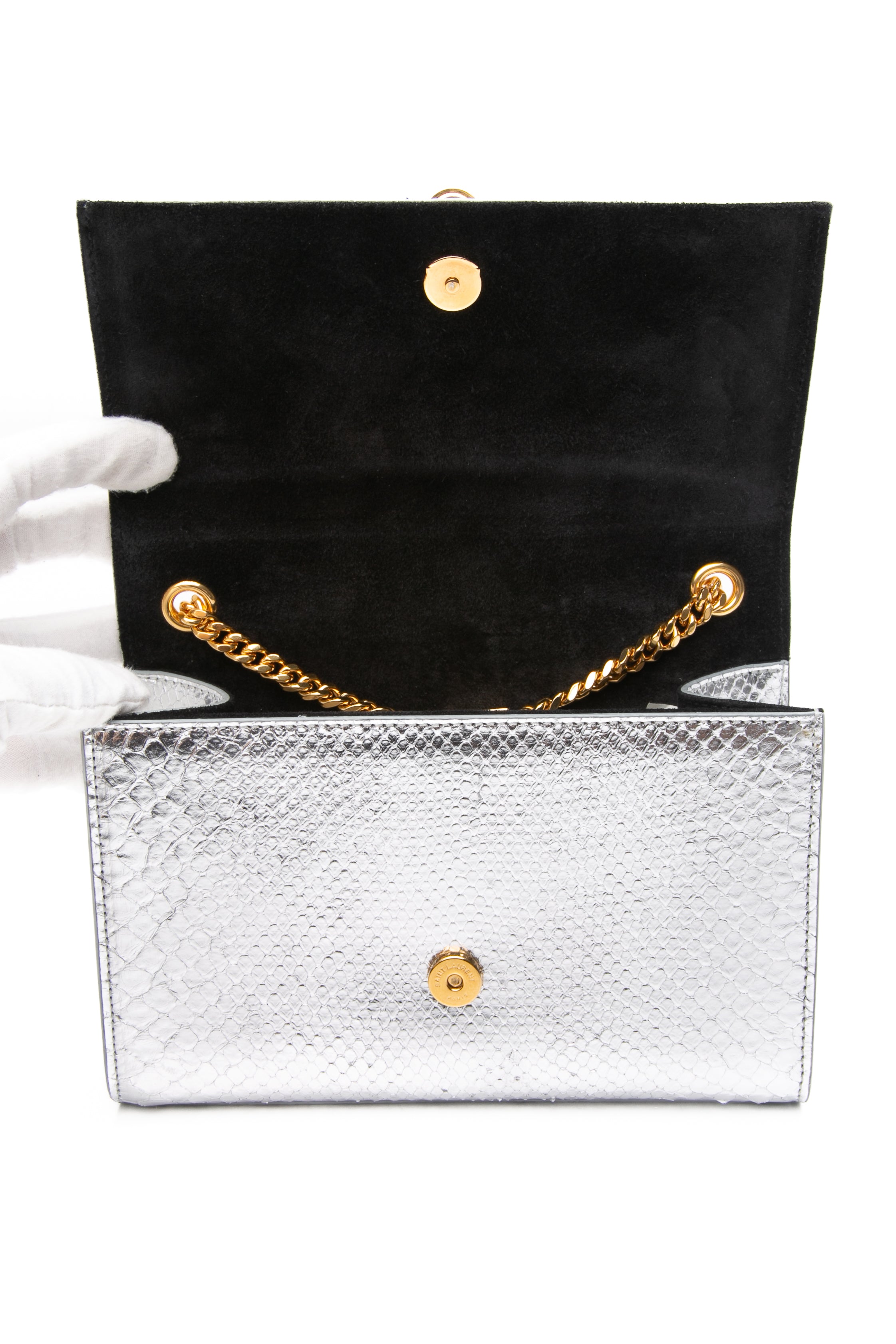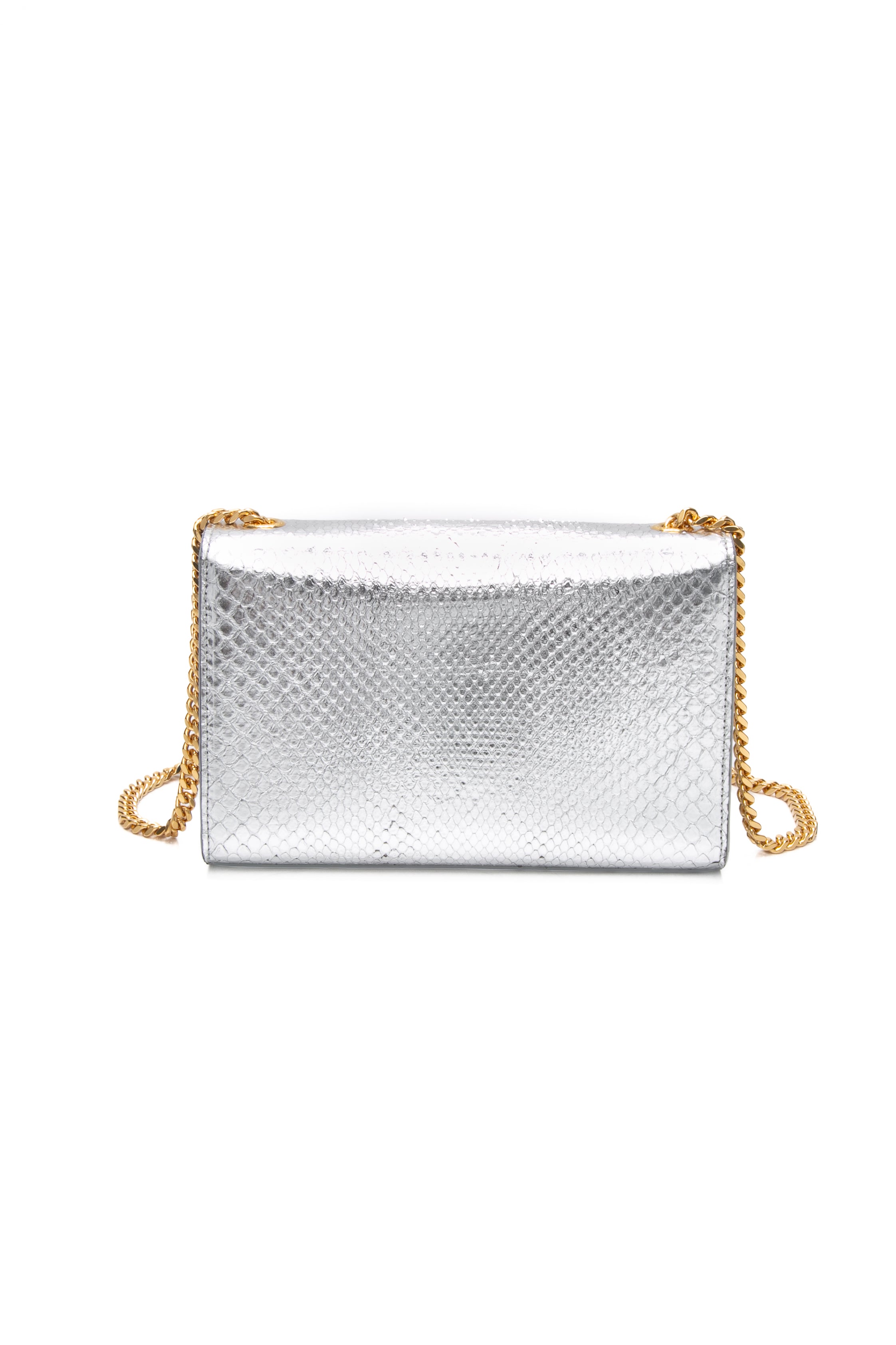 SAINT LAURENT Silver Monogram Python Lamine Moon Small Kate Tassel Crossbody Bag