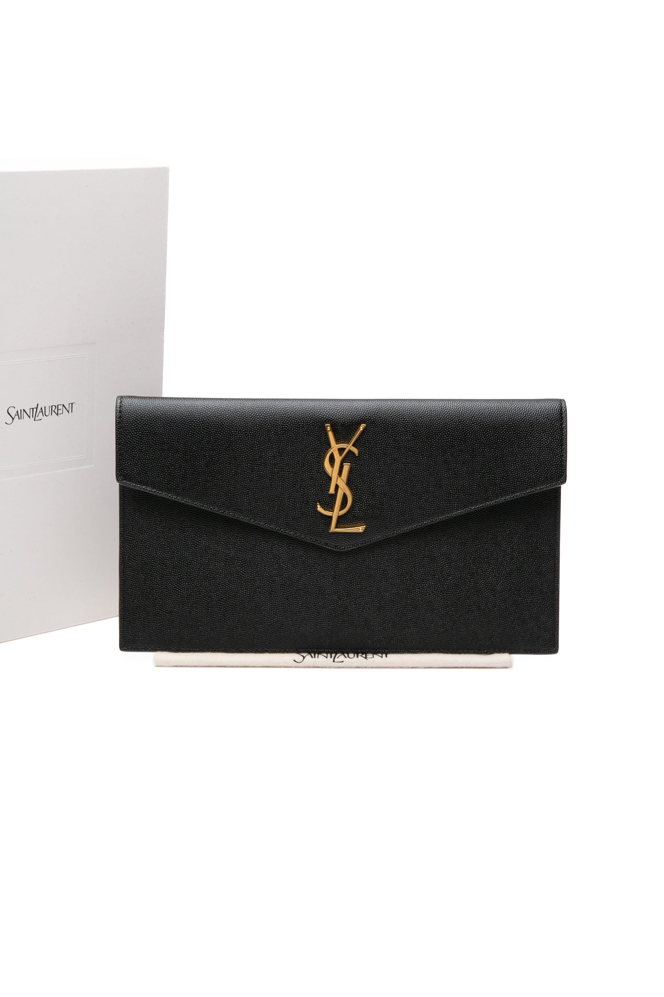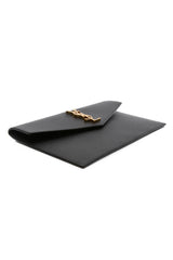 SAINT LAURENT Uptown Black Pouch In Grain de Poudre Leather