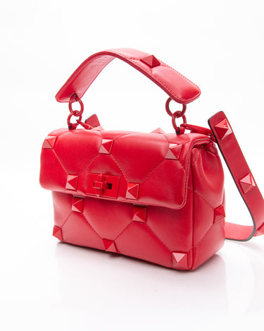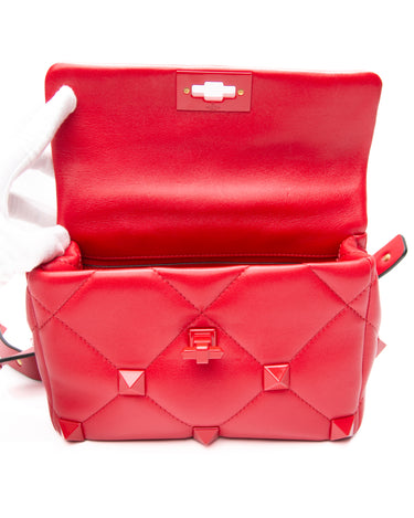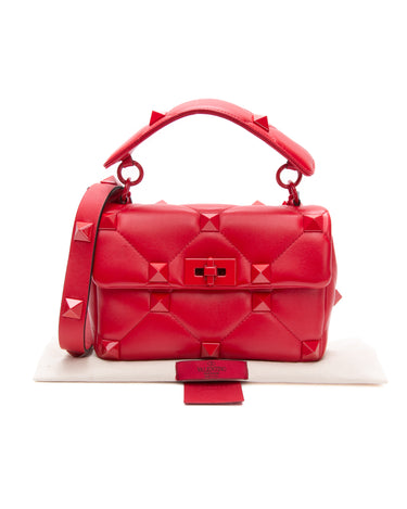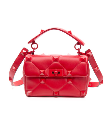 VALENTINO GARAVANI Red Lambskin Roman Stud Bag