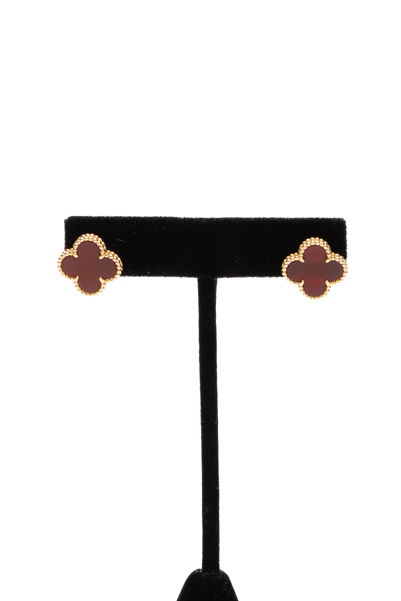 - Vintage Alhambra earrings, 18K yellow gold, Carnelian