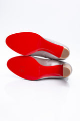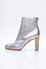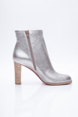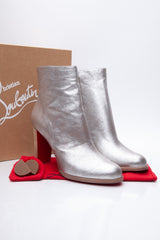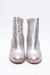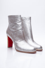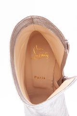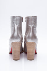 CHRISTIAN LOUBOUTIN Adox Metallic Gray Stack-Heel Red Sole Boots 42